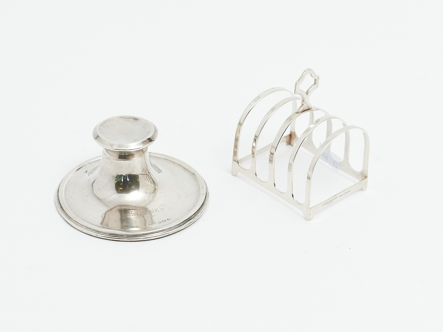 A STERLING SILVER TOAST RACK AND CAPSTAN SHAPE INKWELL, LEONARD JOEL LOCAL DELIVERY: SMALL