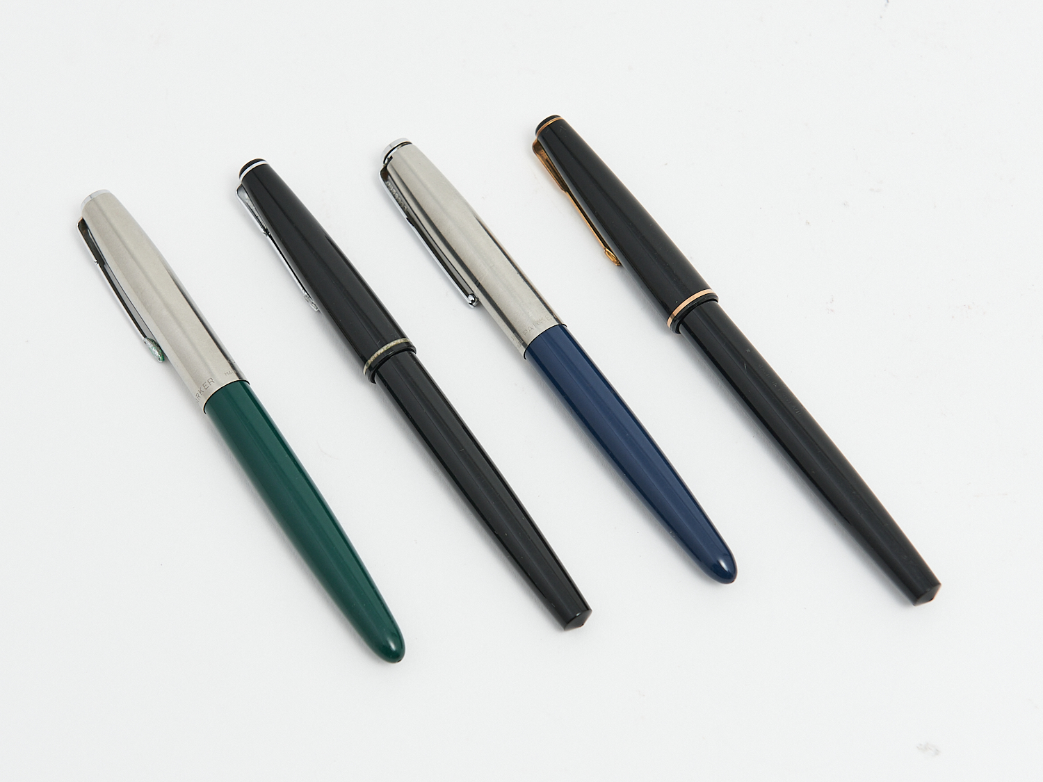 A COLLECTION OF FOUR VINTAGE PARKER 17 AND 21 FOUNTAIN PENS, LEONARD JOEL HOME DELIVERY SIZE: SMALL