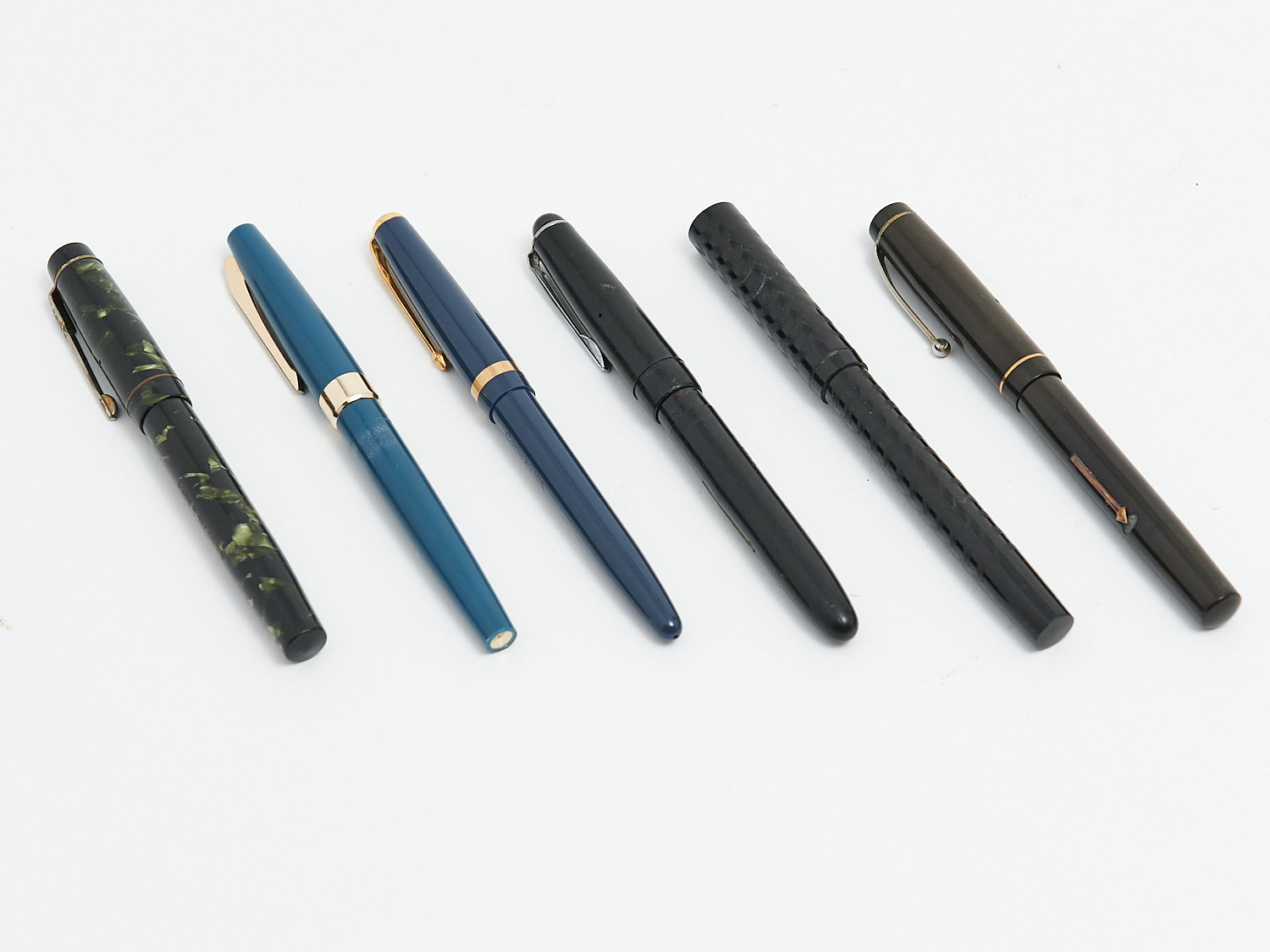A COLLECTION OF SIX VINTAGE FOUNTAIN PENS INCLUDING PILOT PARKER CONWAY STEWART AND OSMOROID, LEONARD JOEL LOCAL DELIVERY: SMALL