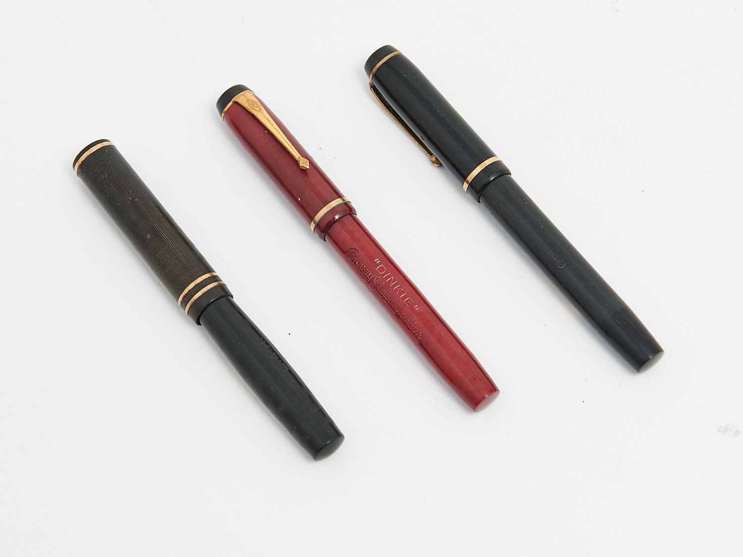 THREE VINTAGE CONWAY STEWART DINKY FOUNTAIN PENS WITH 14 CT GOLD NIBS, LEONARD JOEL LOCAL DELIVERY: SMALL