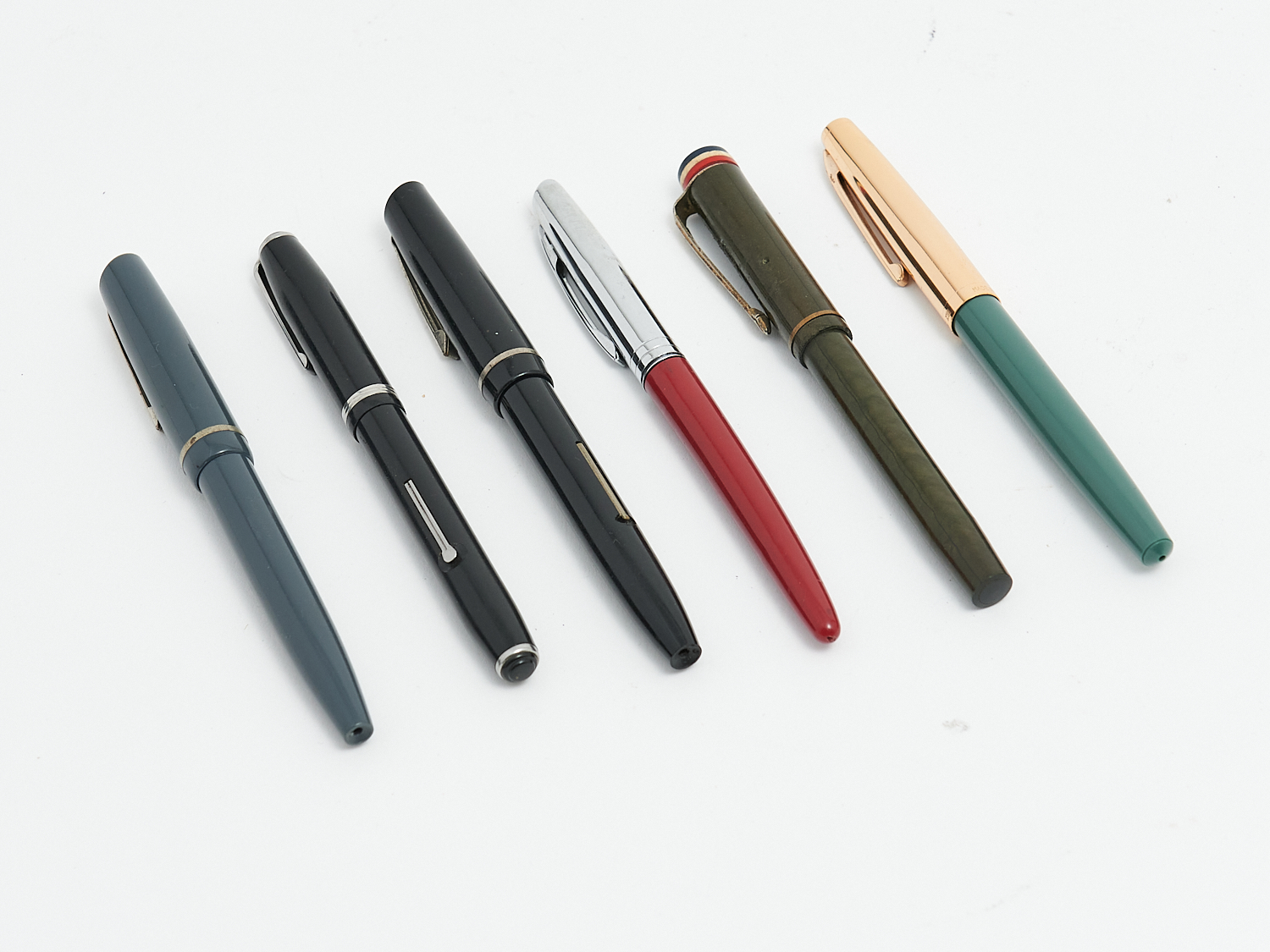 A COLLECTION OF SIX VINTAGE FOUNTAIN PENS INCLUDING SHEAFFER AND OSMOROID, LEONARD JOEL LOCAL DELIVERY: SMALL