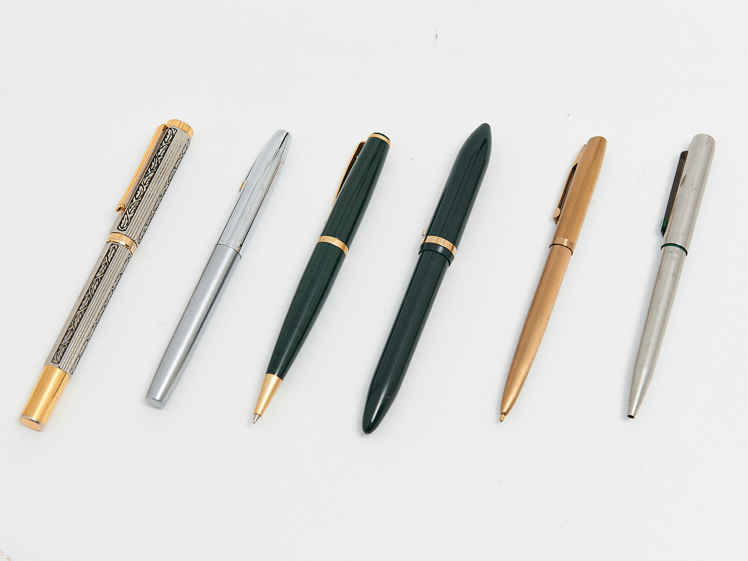A COLLECTION OF SIX VINTAGE FOUNTAIN PENS AND BALLPOINTS INCLUDING PARKER, LEONARD JOEL LOCAL DELIVERY: SMALL