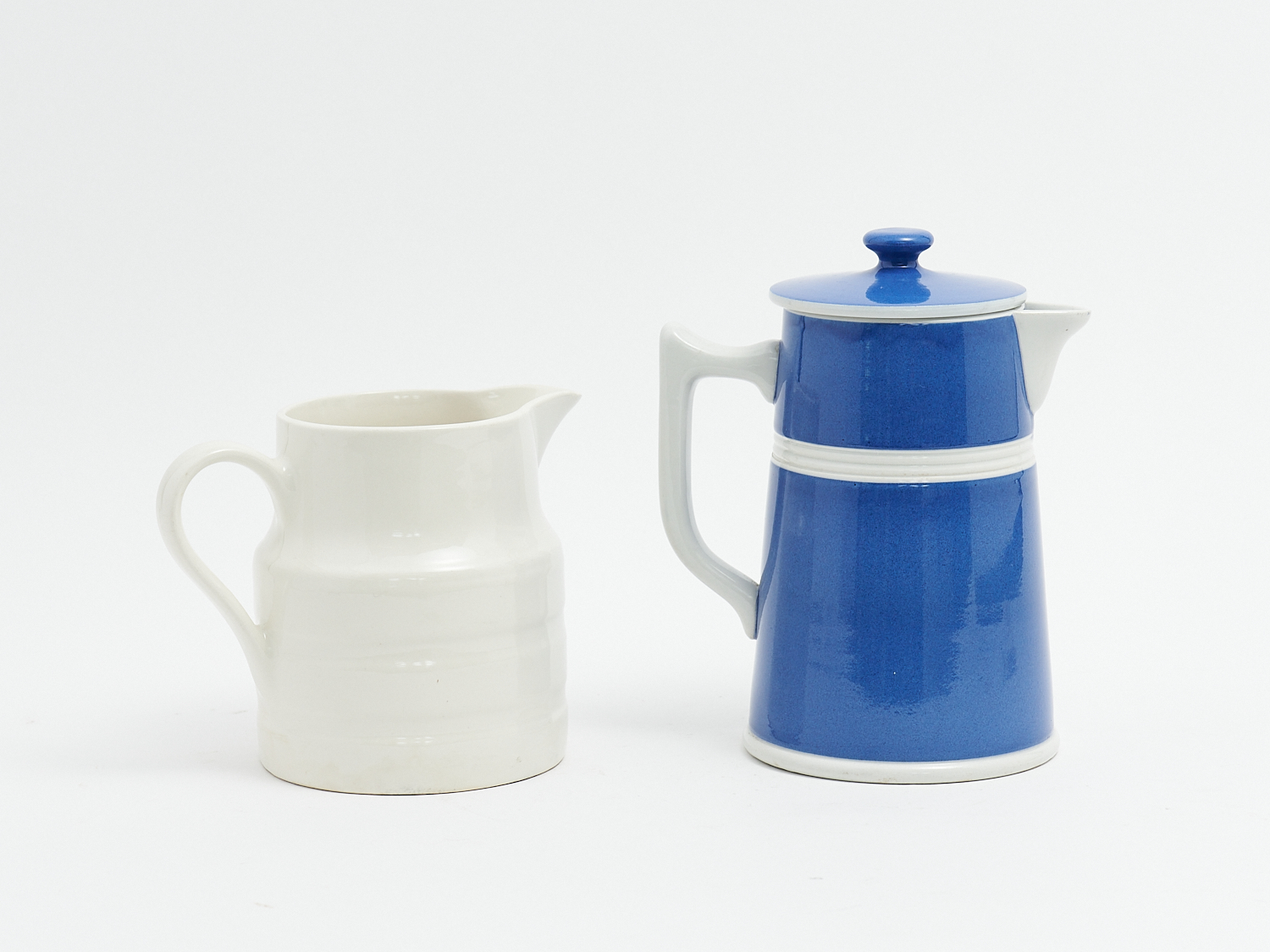 A BLUE AND WHITE COFFEE POT BY R.FOWLER AND A LORD NELSON POTTERY JUG H.22CM, LEONARD JOEL LOCAL DELIVERY: SMALL