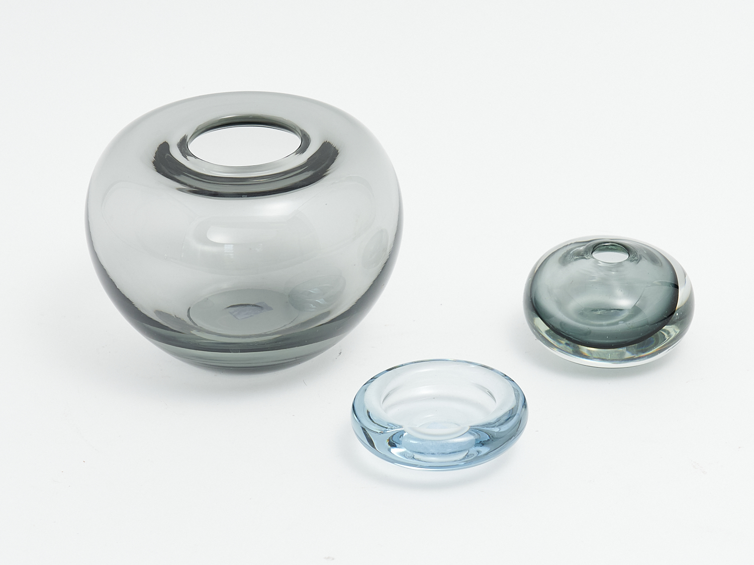 A THREE MID-CENTURY GLASS BOWLS INCLUDING HOLMEGAARD H.13CM, LEONARD JOEL LOCAL DELIVERY: SMALL
