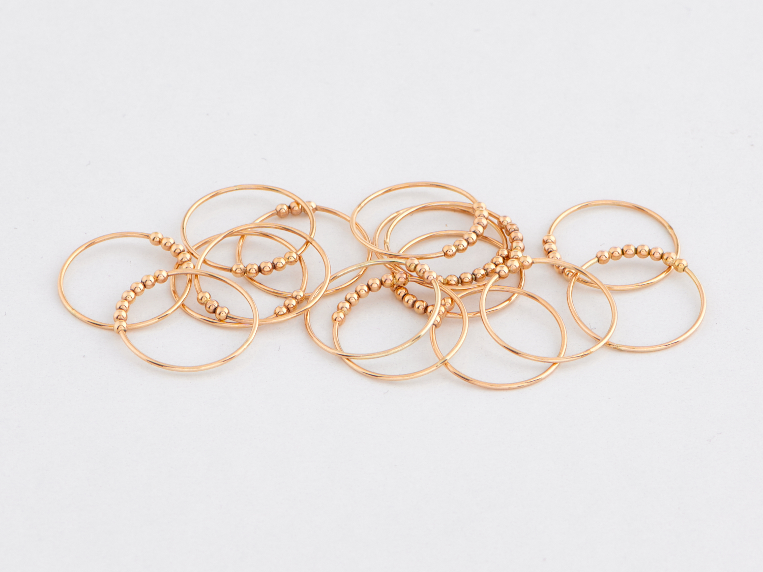 SIXTEEN GOLD BEADED STACKER RINGS IN 9CT GOLD, RING SIZES K-M, WEIGHT 6.4GMS