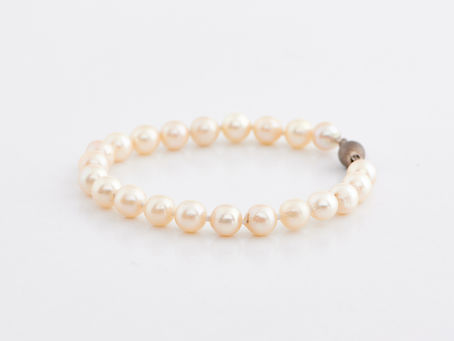 AN AKOYA CULTURED PEARL BRACELET TO A CLASP IN STERLING SILVER, THE PEARLS MEASURING 7.5MM, LENGTH 195MM