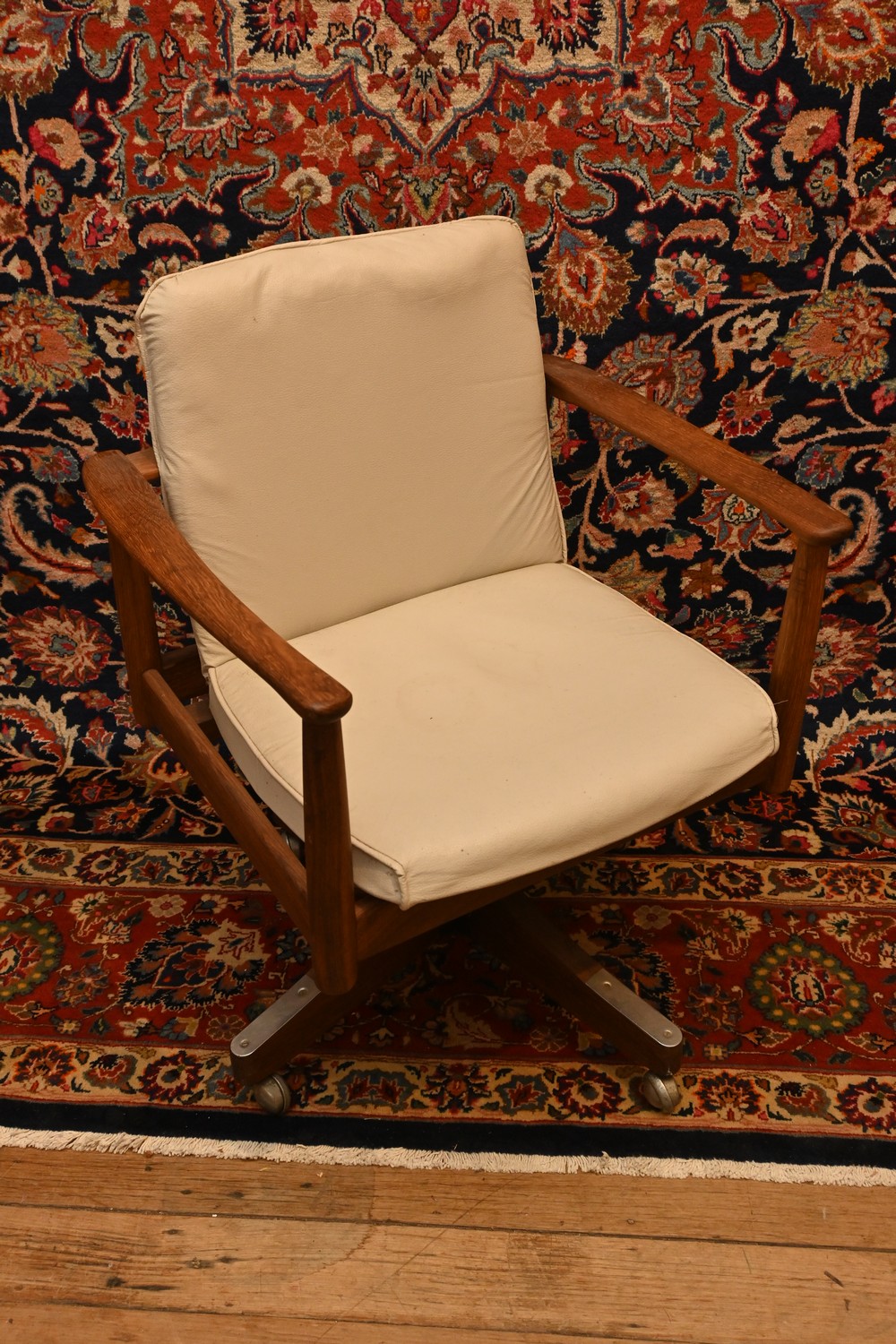 A 1960'S STLYECRAFT SWIVEL DESK ARMCHAIR (A/F) (88H X 64W X 57D CM)