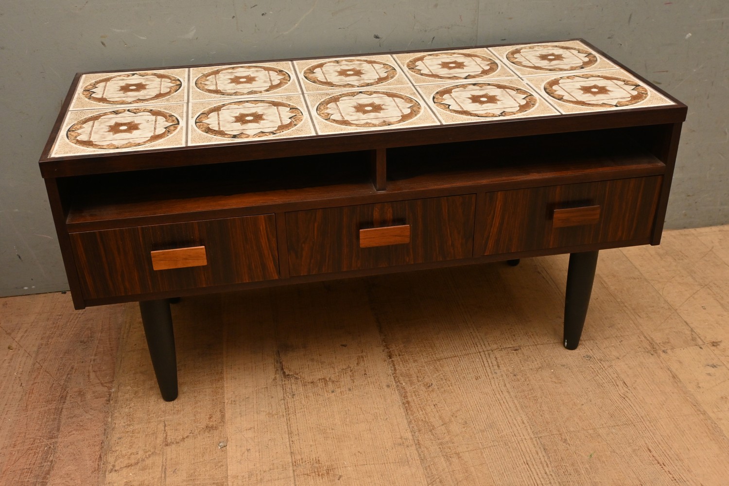 A MID CENUTRY TILE TOP ROSEWOOD HALL UNIT ( 53H X 105W X 45D CM ) (LEONARD JOEL DELIVERY SIZE: X-LARGE)