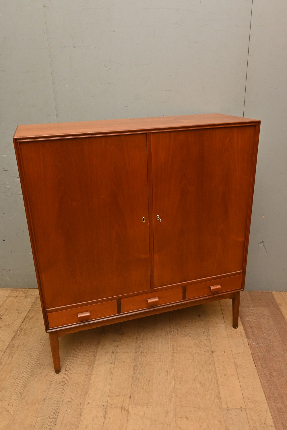 A 1960'S DANISH SIDEBOARD CABINET (A/F) (122H X 110W X 42D CM) (LEONARD JOEL DELIVERY SIZE: X-LARGE)