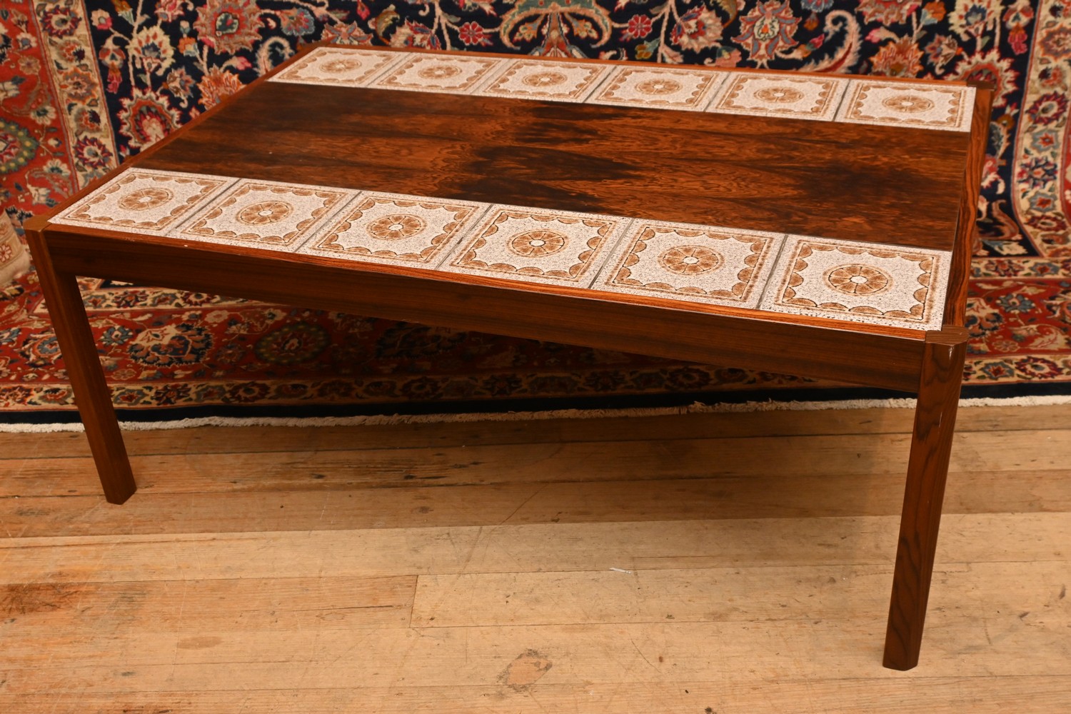 A MID-CENTURY DANISH ROSEWOOD AND TILED LOW TABLE ( A/F) ( 49H X 126W X 85D CM) (LEONARD JOEL DELIVERY SIZE: X-LARGE)