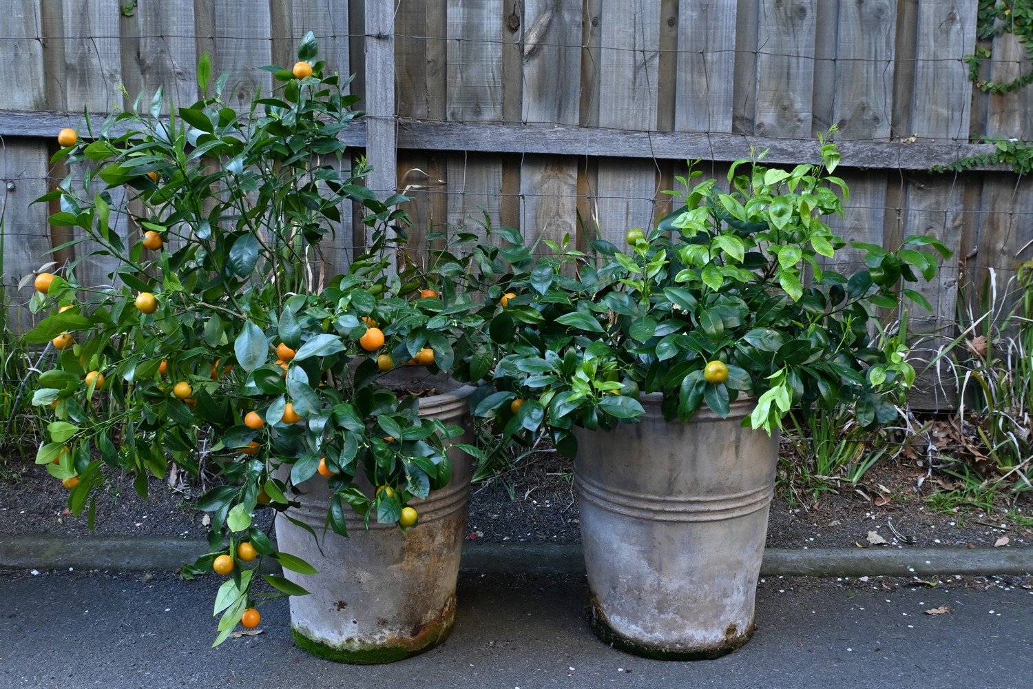 A PAIR OF LARGE TERRACOTTA PLANTERS WITH MANDARIN TREES (122H X 47D CM) (THIS HEAVY ITEM MUST BE REMOVED BY CLIENTS OR CARRIERS AT THE CUSTOMERS EXPENSE. LEONARD JOEL STAFF CANNOT ASSIST CARRYING THIS ITEM)