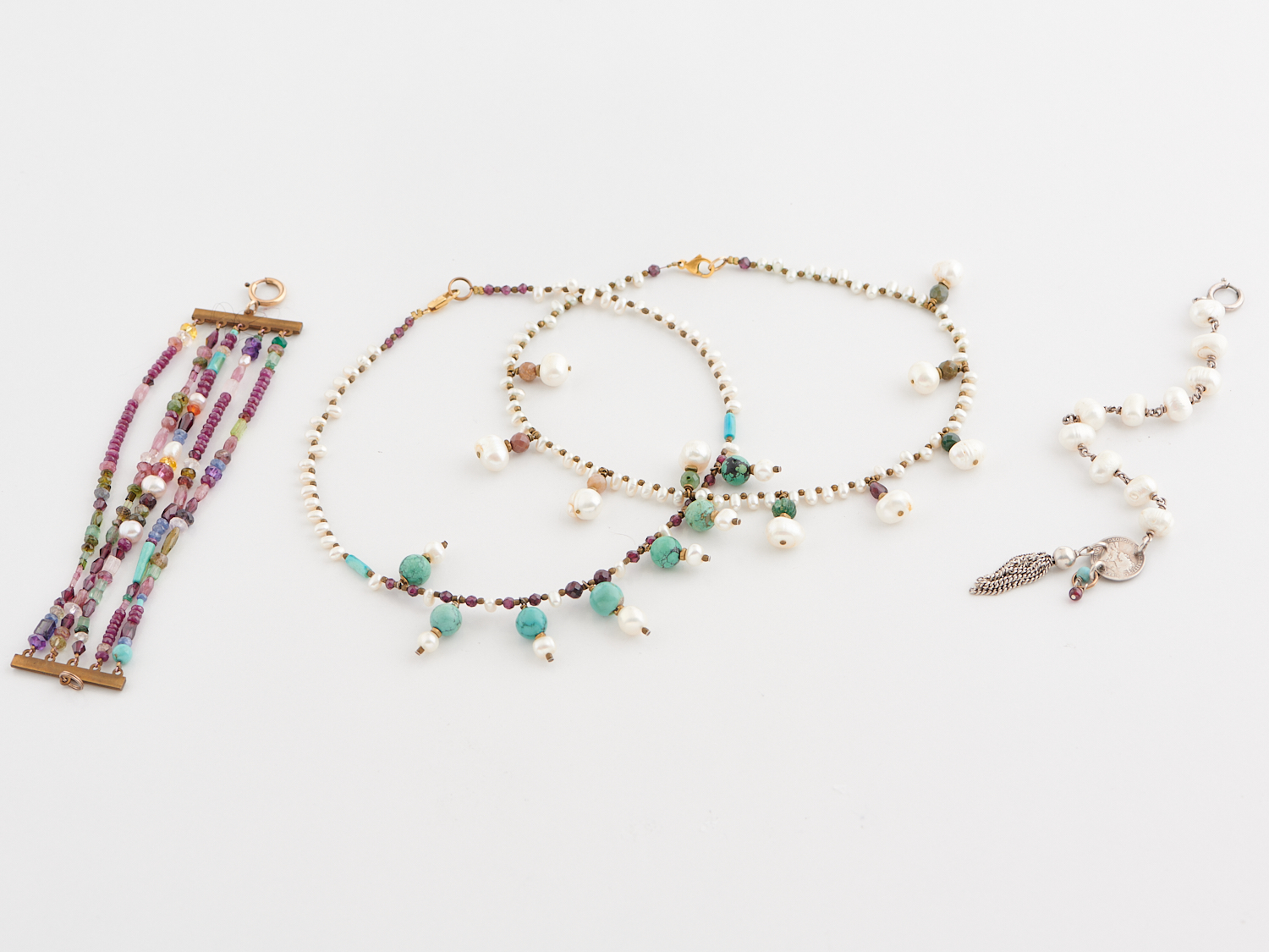 A COLLECTION OF JEWELLERY BY FIORINA, COMPRISING TWO NECKLACES AND TWO GEM AND PEARL SET BRACELETS