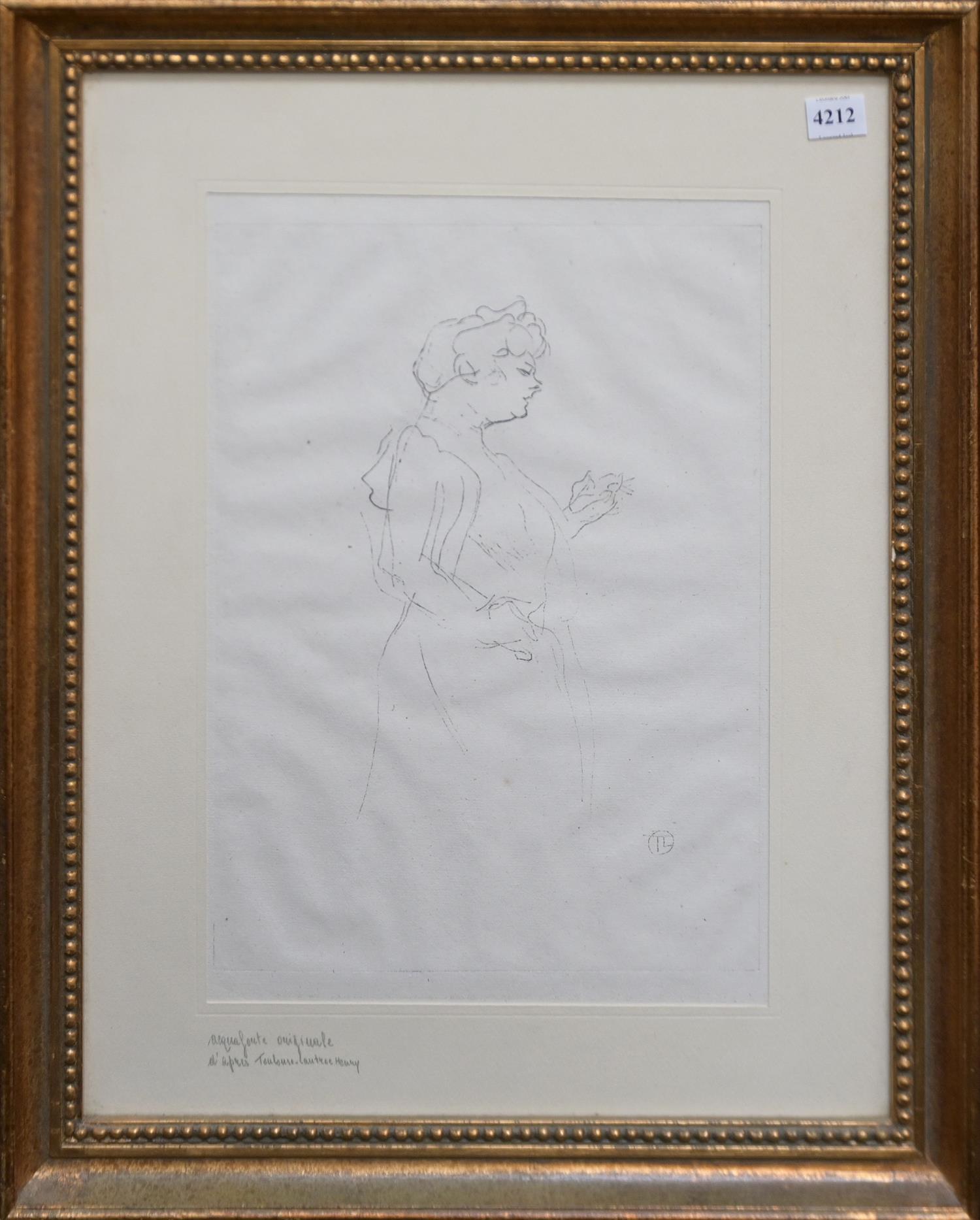 AFTER HENRI DE TOULOUSE LAUTREC, YVETTE GUILBERT, ETCHING, MONOGRAMMED IN PLATE, 32 X 23CM, FRAME SIZE: 51 X 42CM