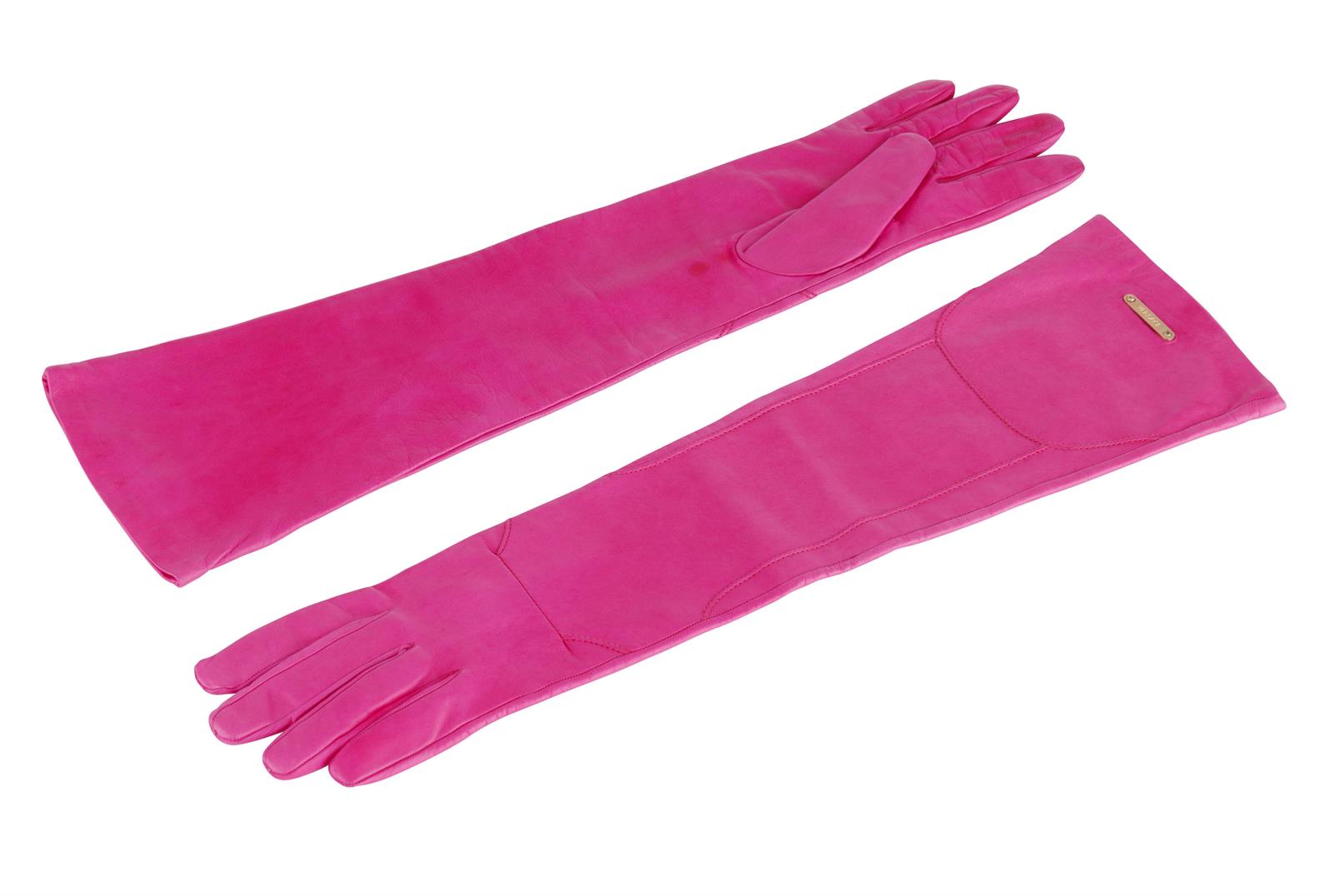 Styled in hot pink leather with pink lining, labelled size L.