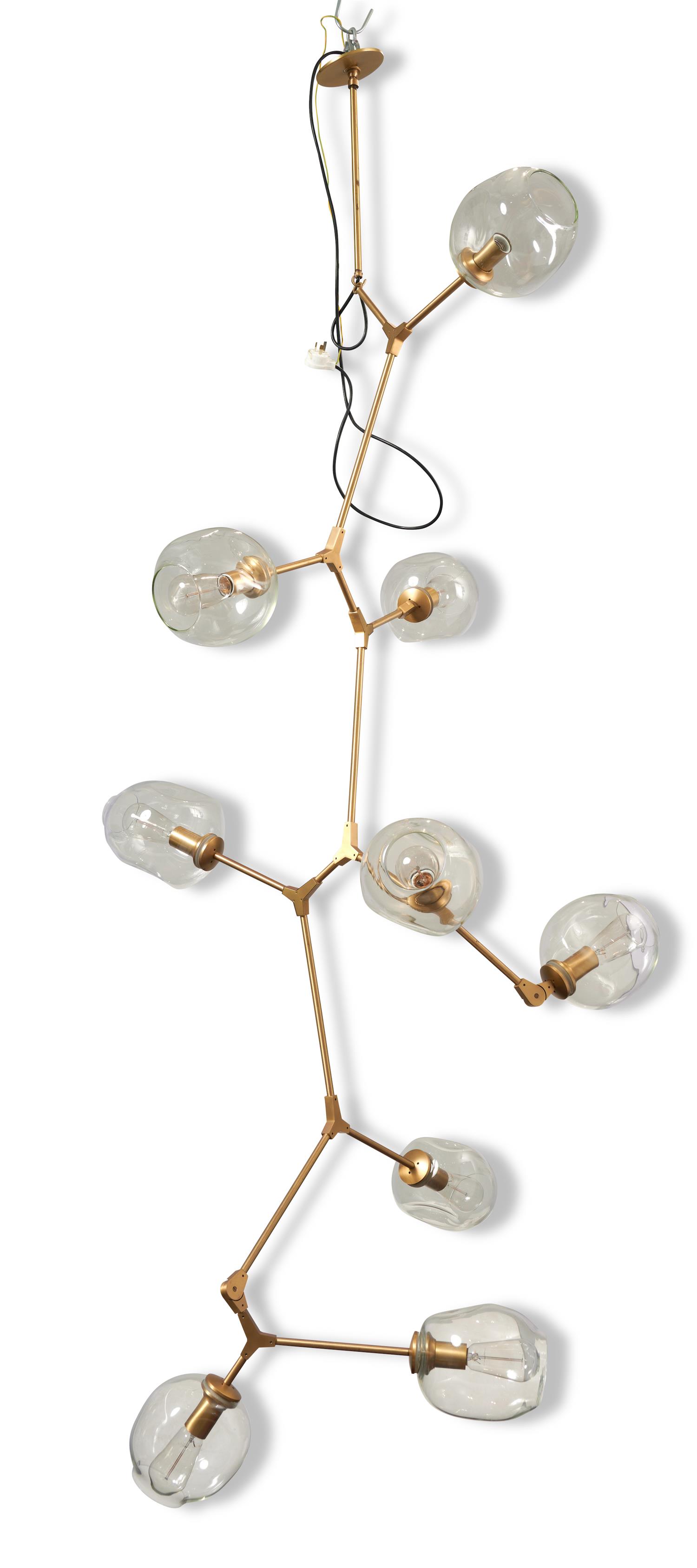 Hand blown glass, brass, metal, and porcelain.