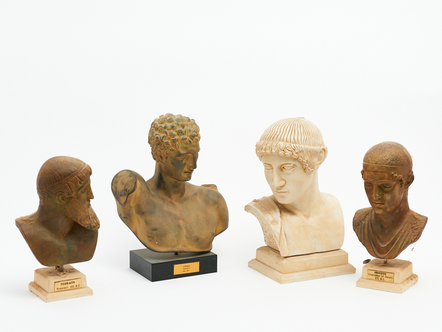 A GROUP OF THREE PLASTER BUSTS INCLUDING CHERIOTTER OF DELPHI, HERMES AND OTHERS H.27CM (TALLEST), LEONARD JOEL LOCAL DELIVERY: MEDIUM