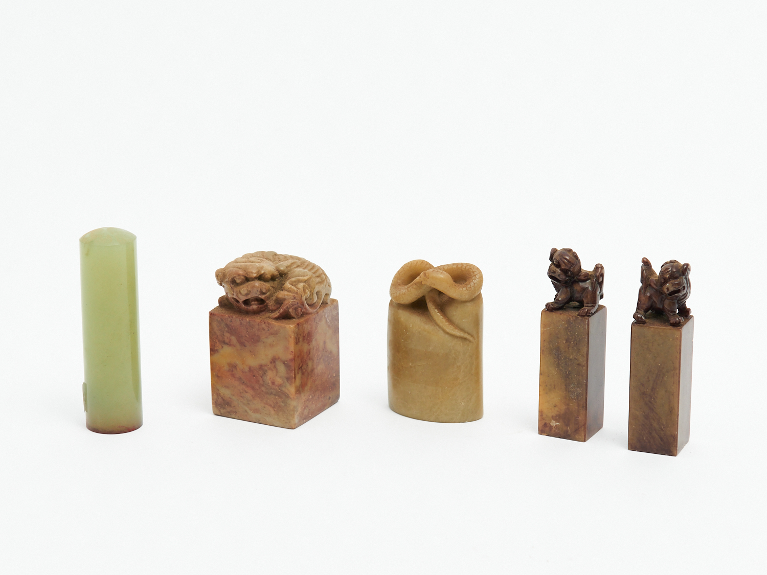 A GROUP OF CHINESE HARD STONE SEALS H.8CM (TALLEST), LEONARD JOEL LOCAL DELIVERY: SMALL