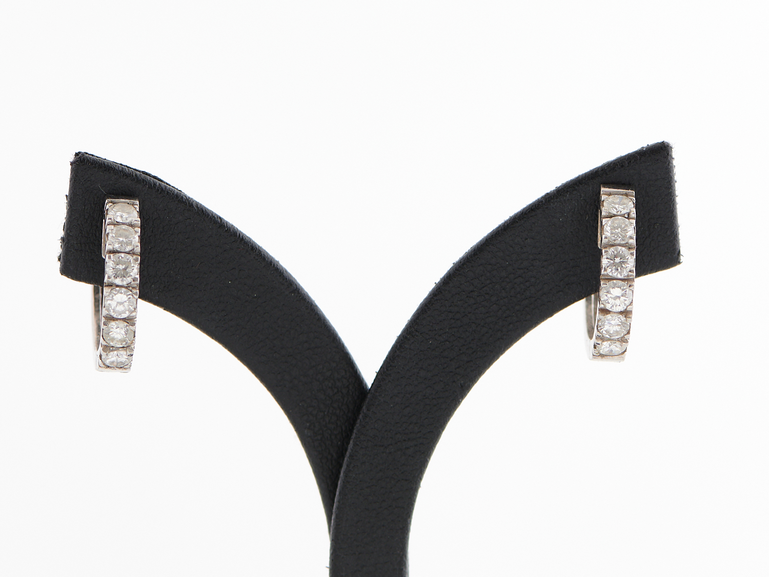 A PAIR OF DIAMOND EARRINGS IN 18CT WHITE GOLD, EACH ARTICULATED DROP EARRING COMPRISING SIX GRADUATING CLAW-SET BRILLIANT-CUT DIAMON...