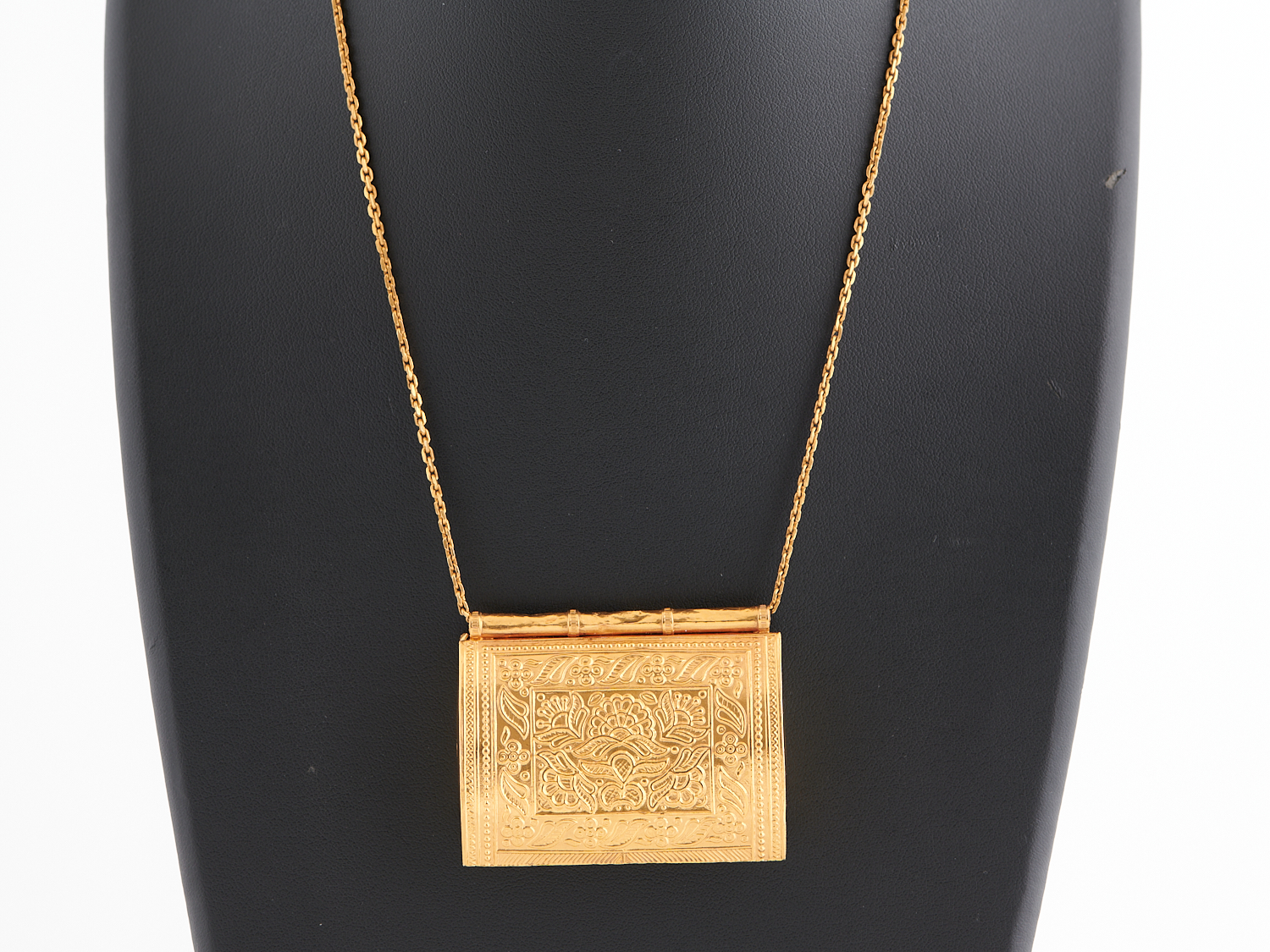 A PENDANT NECKLACE IN HIGH CARAT GOLD, LENGTH 65MM, WEIGHT 42.3GMS