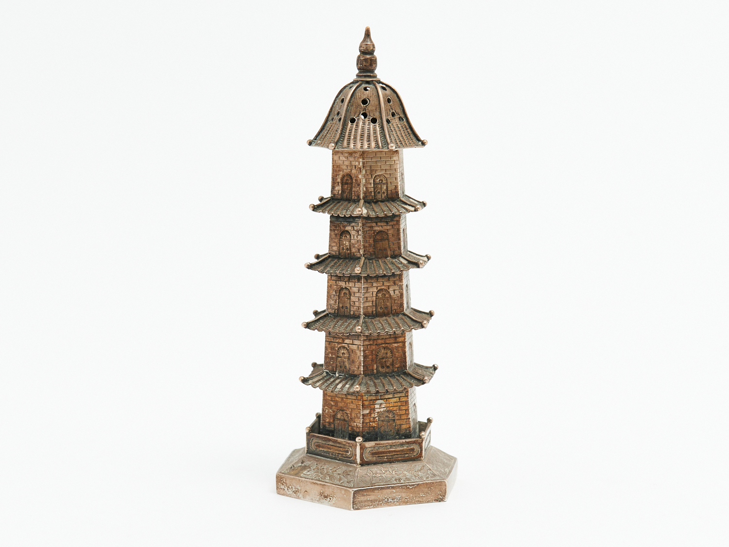 A LATE 19TH / EARLY 20TH CENTURY CHINESE EXPORT SILVER PEPPERETTE IN THE FORM OF A PAGODA, 184 GRAMS, H.19CM, LEONARD JOEL LOCAL DELIVERY: SMALL