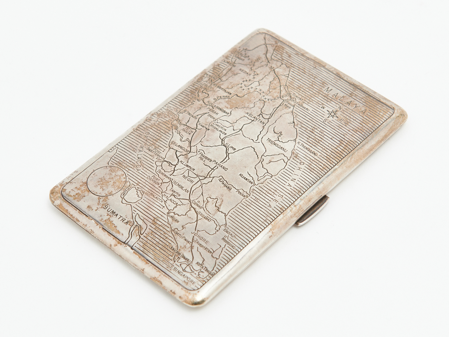 A STERLING SILVER CIGARETTE CASE WITH MAP OF ENGRAVED MALAYA TO TOP H.14 X W.8CM, 229 GRAMS, LEONARD JOEL LOCAL DELIVERY: SMALL