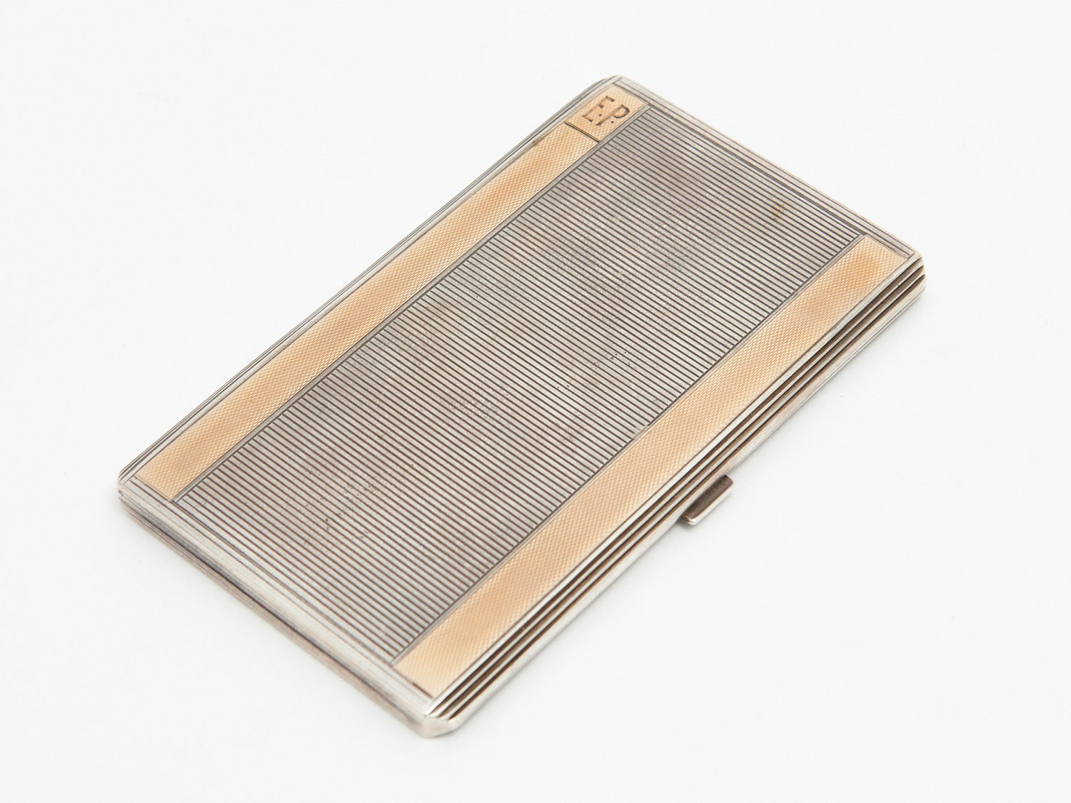 A CIGARETTE CASE MARKED "STERLING" WITH ENGINE TURNED DESIGN AND INITIALS "E.P", 14 X 8CM, 230 GRAMS, LEONARD JOEL LOCAL DELIVERY: SMALL
