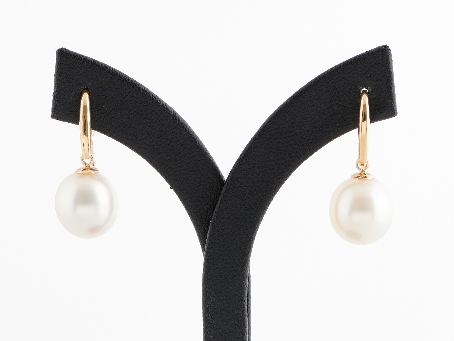 A PAIR OD SOUTH SEA PEARL EARRINGS TO 9CT GOLD SHEPPHERD HOOKS, THE PEARLS MEASURING 10MM