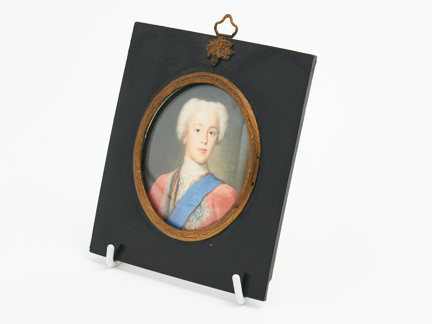 A PRINT IN THE STYLE OF A PORTRAIT MINIATURE DEPICTING PRINCE CHARLES STUART H.13.5CM X W.11.5CM, LEONARD JOEL LOCAL DELIVERY: SMALL