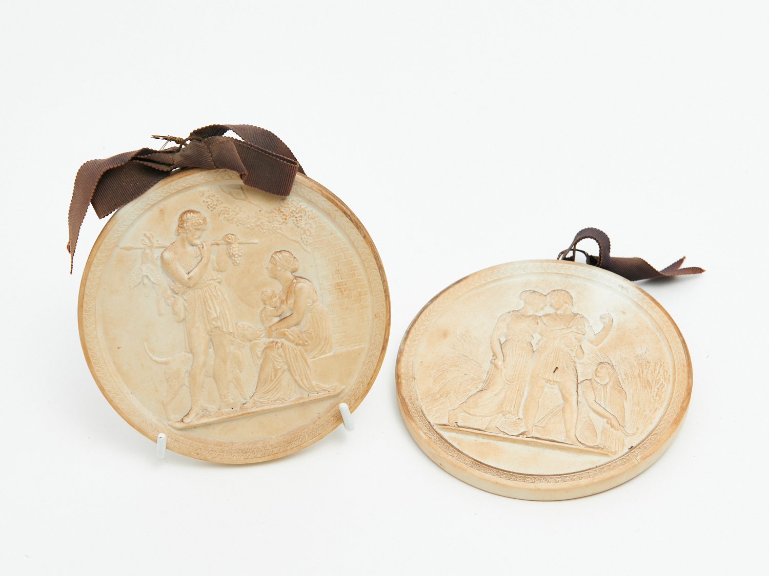 TWO ROYAL COPENHAGEN CERAMIC WALL PLAQUES DIA.14CM, LEONARD JOEL LOCAL DELIVERY: SMALL