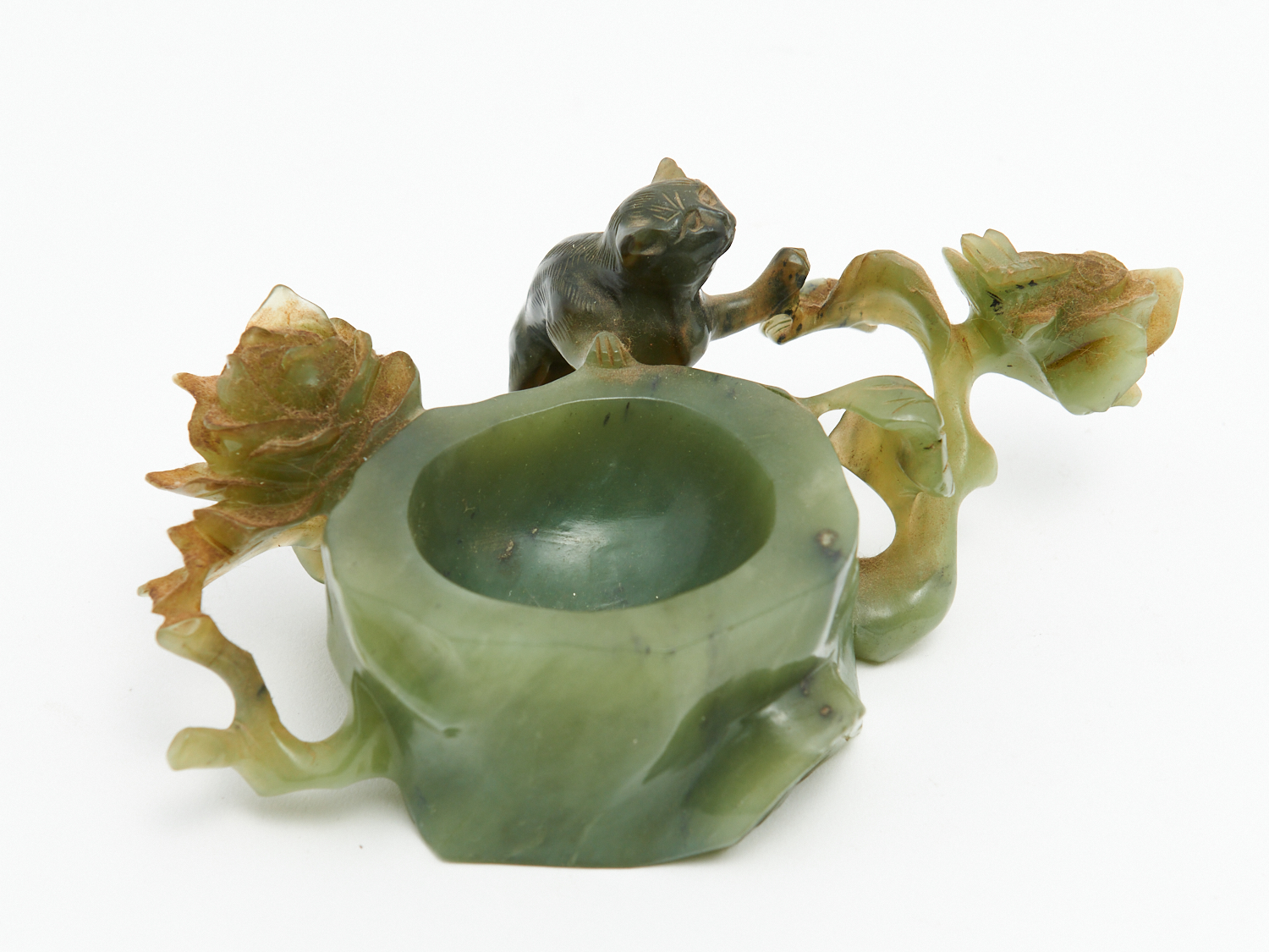 A HARD STONE CARVING WITH A CAT MOTIF W.18CM, LEONARD JOEL LOCAL DELIVERY: SMALL