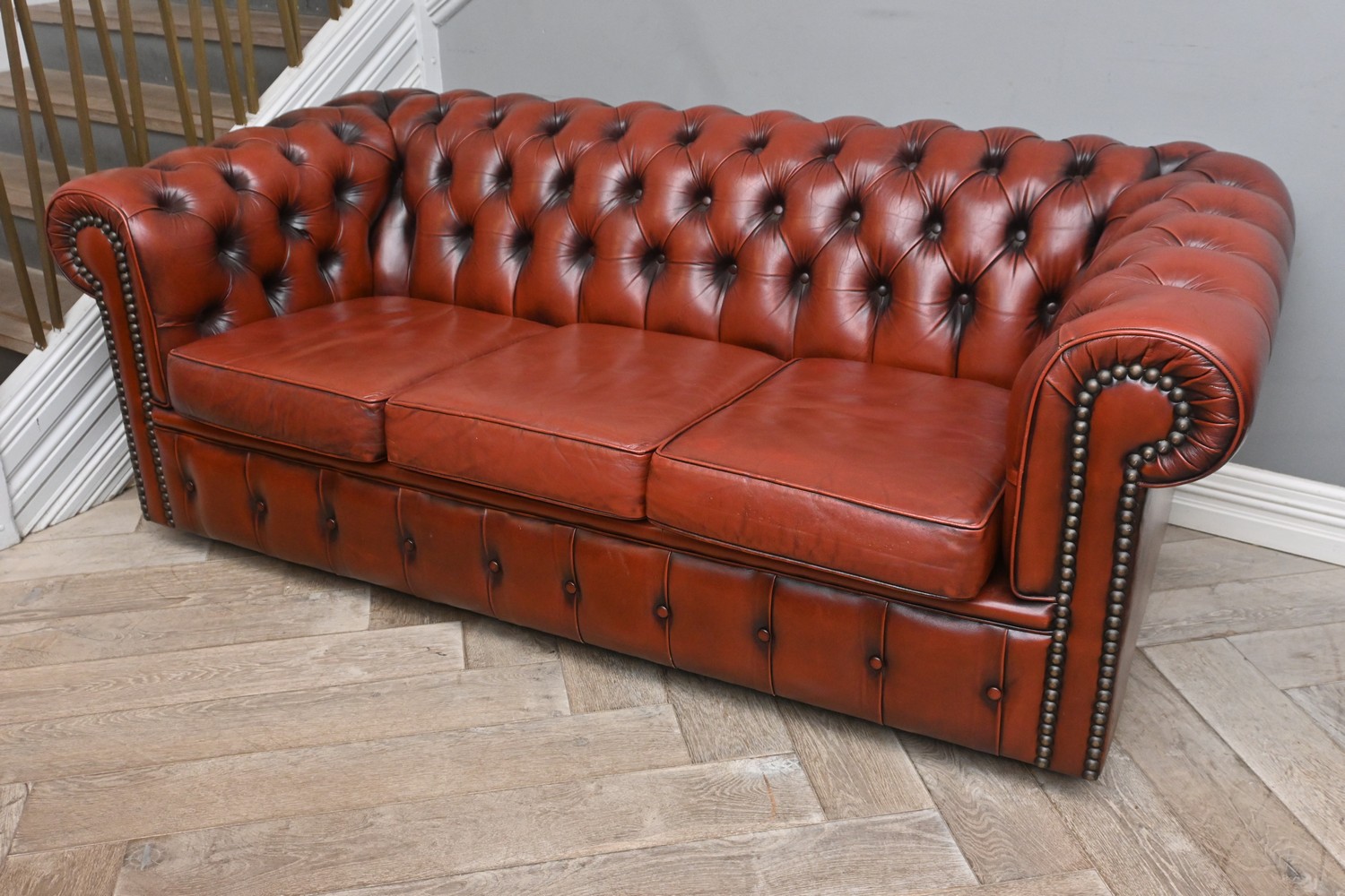 A MORAN THREE-SEAT CHESTERFIELD SOFA (A/F) (70H X 195W X 90D CM) (THIS HEAVY ITEM MUST BE REMOVED BY CLIENTS OR CARRIERS AT THE CUSTOMERS EXPENSE. LEONARD JOEL STAFF CANNOT ASSIST CARRYING THIS ITEM)