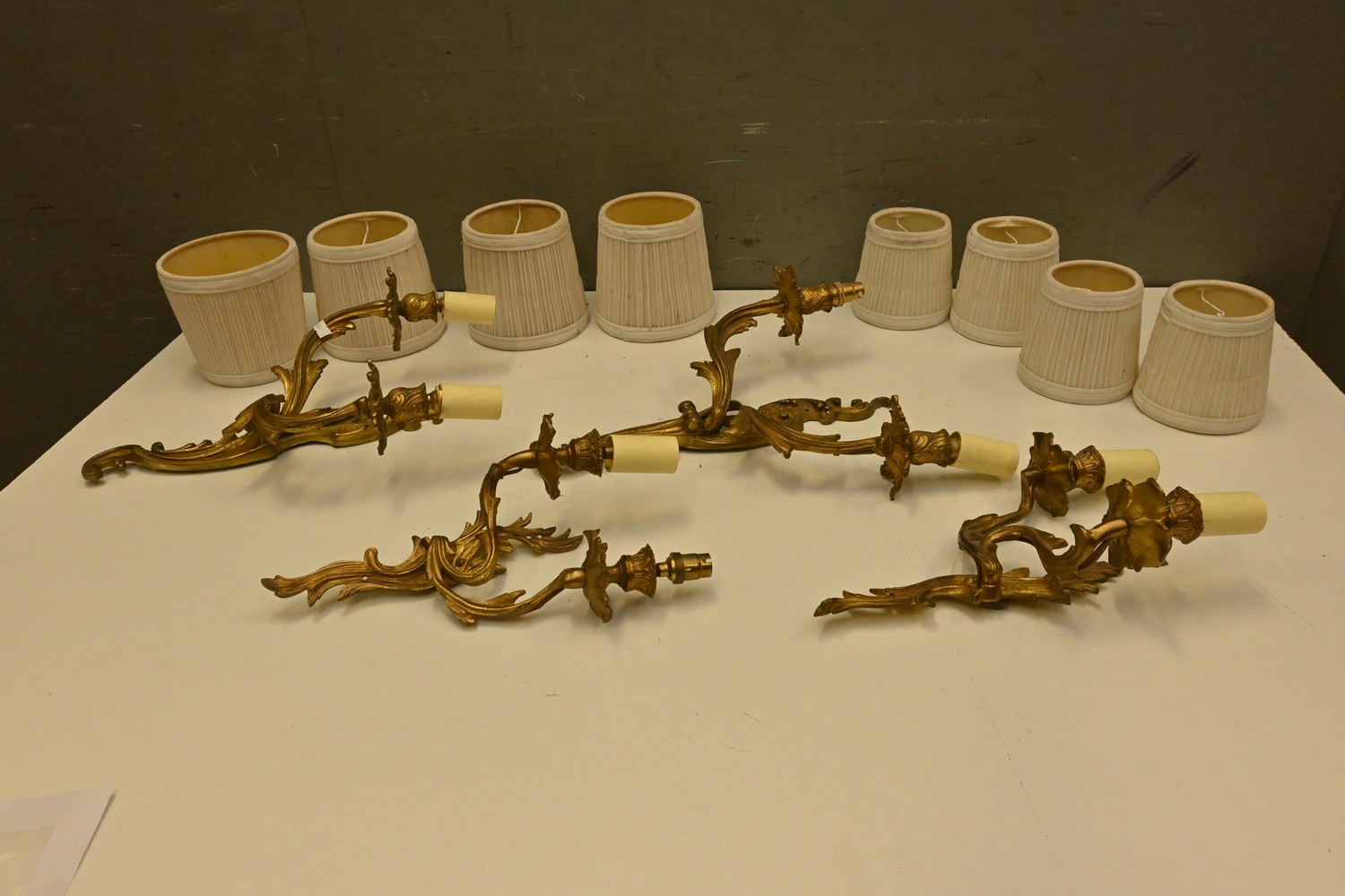 A COLLECTION OF FOUR FRENCH STYLE GILT EFFECT WALL SCONCES (41H X 30W CM) (LEONARD JOEL DELIVERY SIZE: LARGE)