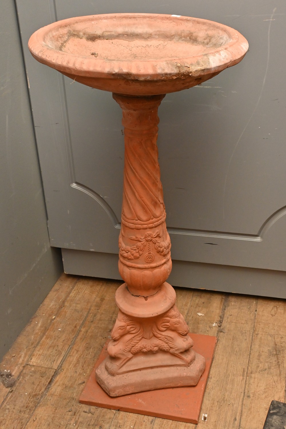 A TERRA COTTA BIRD BATH IN CLASSICAL MANNER (A/F) (93H X 46D CM) (THIS HEAVY ITEM MUST BE REMOVED BY CLIENTS OR CARRIERS AT THE CUSTOMERS EXPENSE. LEONARD JOEL STAFF CANNOT ASSIST CARRYING THIS ITEM)