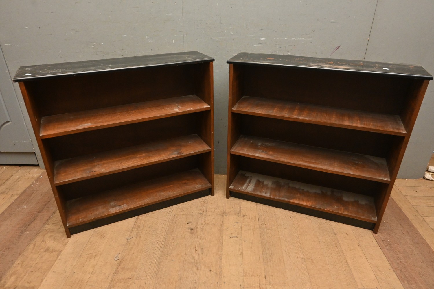 A PAIR OF PINE LOW BOOK-CASES (A/F) ( 93H X 95W X 25D CM) (LEONARD JOEL DELIVERY SIZE: X-LARGE)