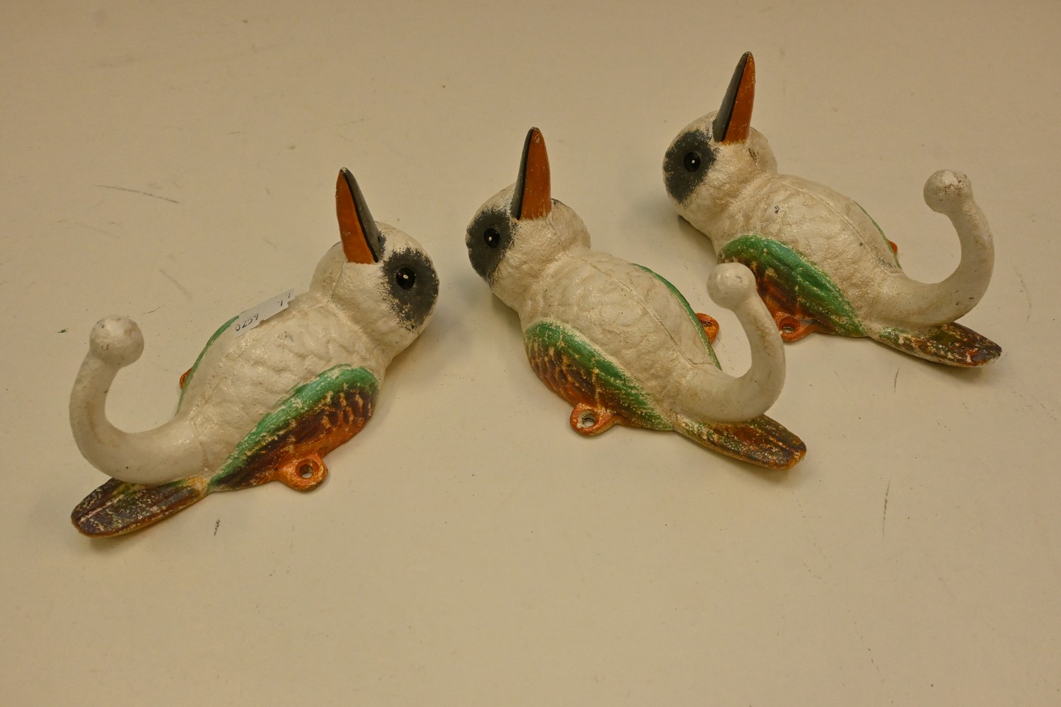 A SET OF THREE KOOKABURRA COAT HOOKS (17H CM) (LEONARD JOEL DELIVERY SIZE: SMALL)