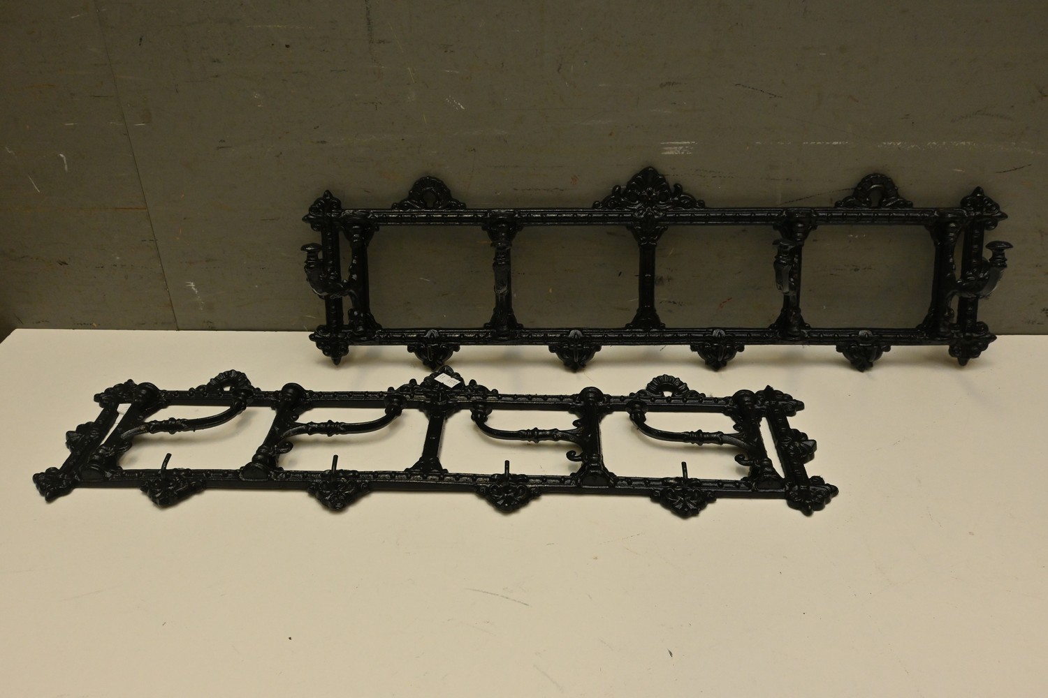 A PAIR OF BLACK METAL COAT HOOKS ( 20H X 62W CM) (LEONARD JOEL DELIVERY SIZE:MEDIUM)