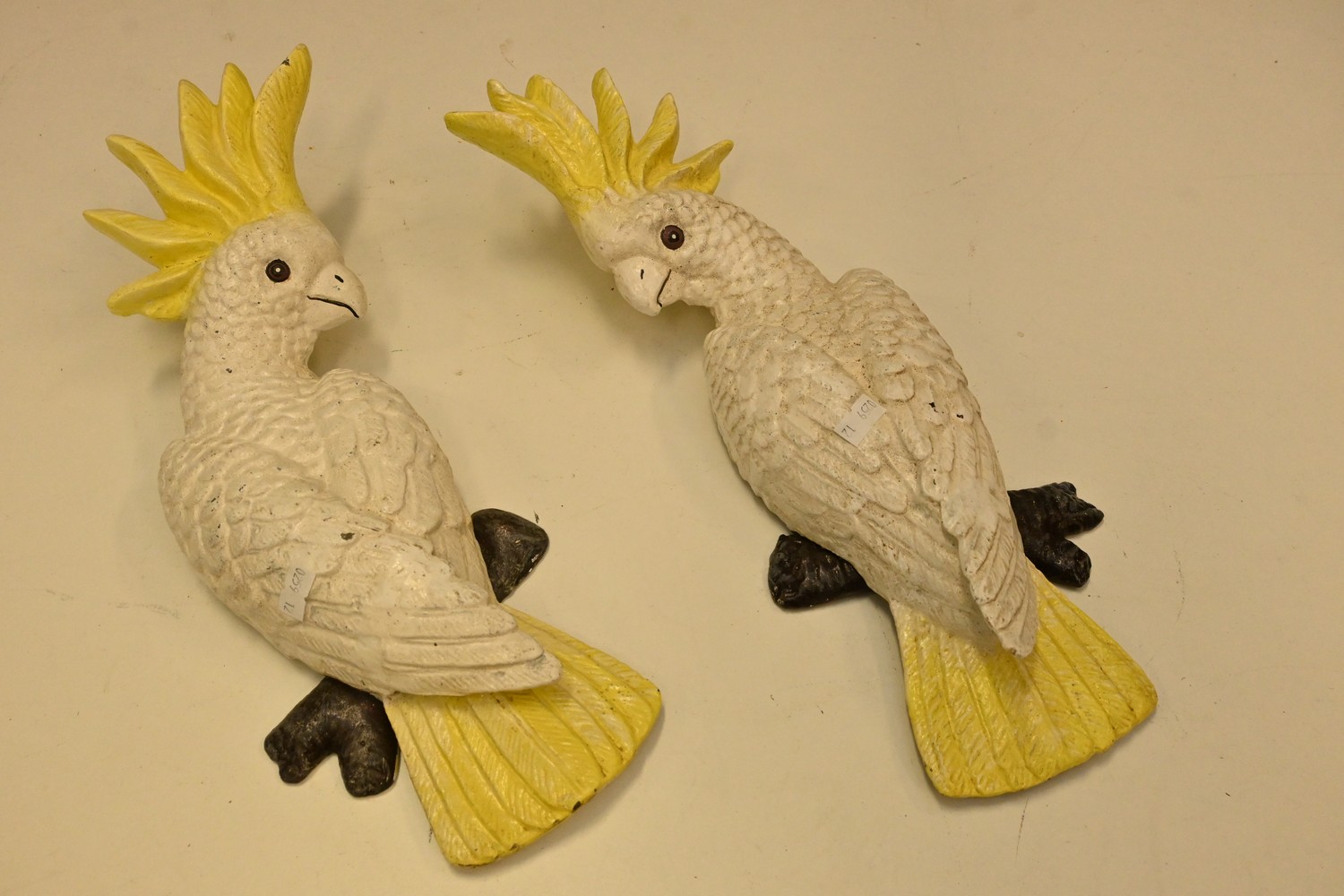 A PAIR OF WALL MOUNTED COCKATOOS ( 40H CM) (LEONARD JOEL DELIVERY SIZE: SMALL)