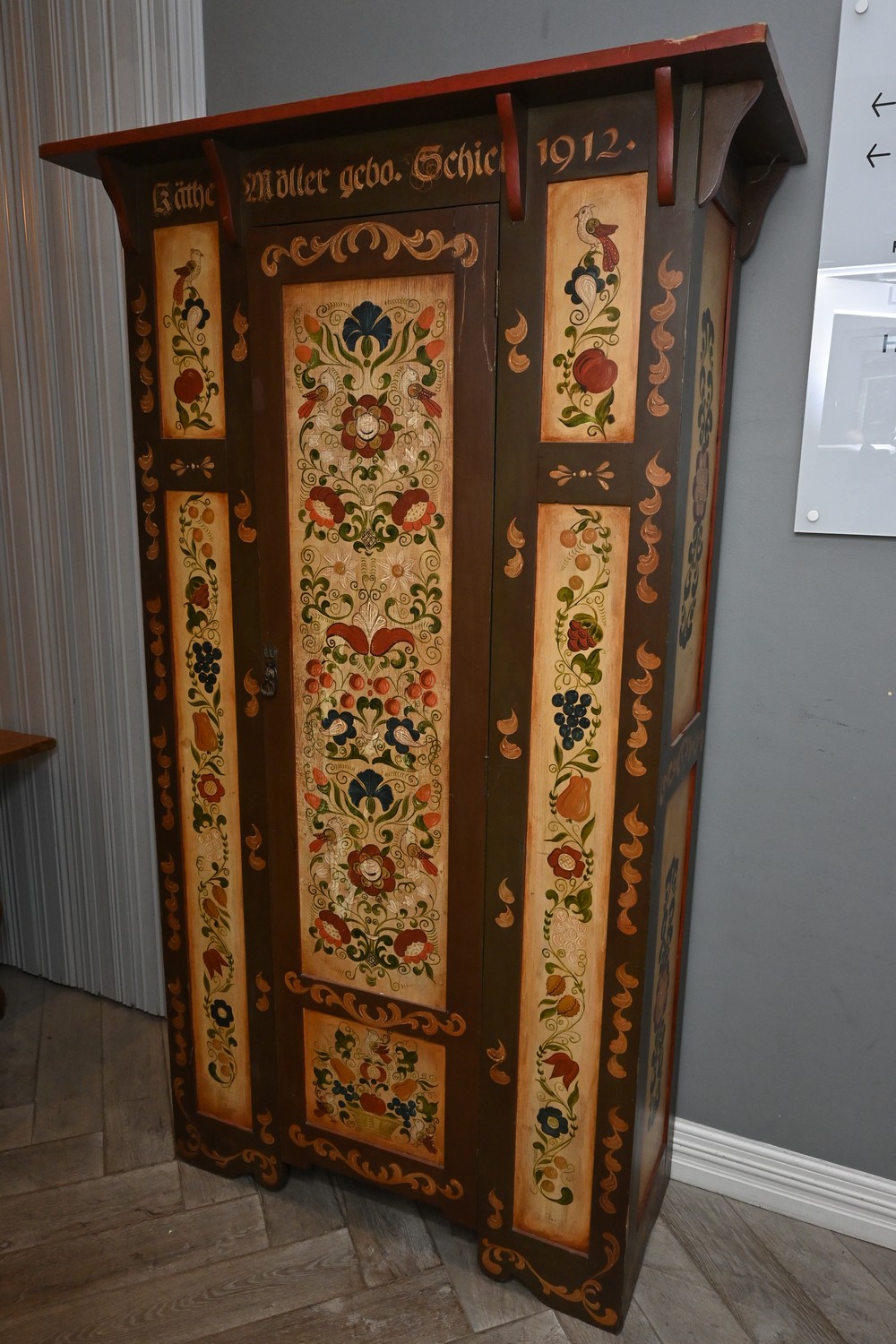 AN EARLY 20th CENTURY HAND-PAINTED WARDROBE (A/F) (198H X 1016W X 51D CM) (THIS HEAVY ITEM MUST BE REMOVED BY CLIENTS OR CARRIERS AT THE CUSTOMERS EXPENSE. LEONARD JOEL STAFF CANNOT ASSIST CARRYING THIS ITEM)
