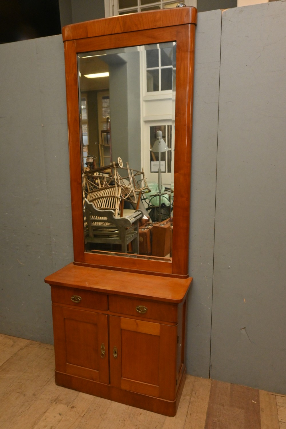 A EUROPEAN MIRROR BACKED CABINET (A/F) (214H X 83W X 34D CM) (THIS HEAVY ITEM MUST BE REMOVED BY CLIENTS OR CARRIERS AT THE CUSTOMERS EXPENSE. LEONARD JOEL STAFF CANNOT ASSIST CARRYING THIS ITEM)