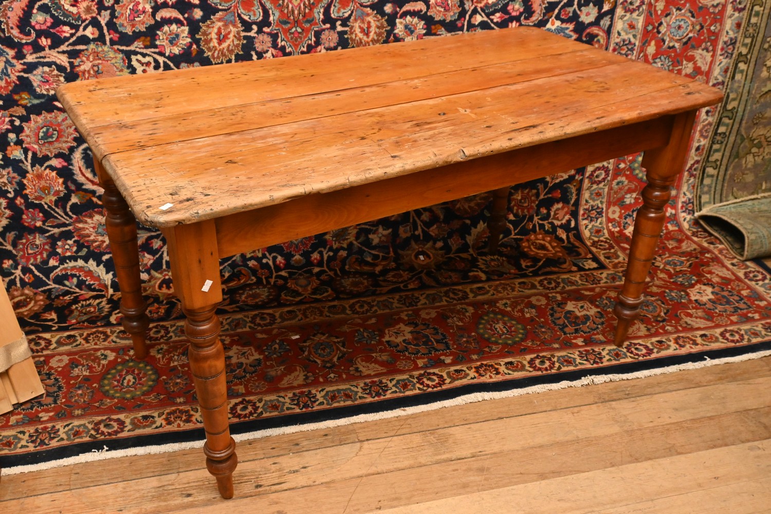 A RUSTIC PINE KITCHEN TABLE (A/F) (75H X 137W X 73D CM) (LEONARD JOEL DELIVERY SIZE: X-LARGE)