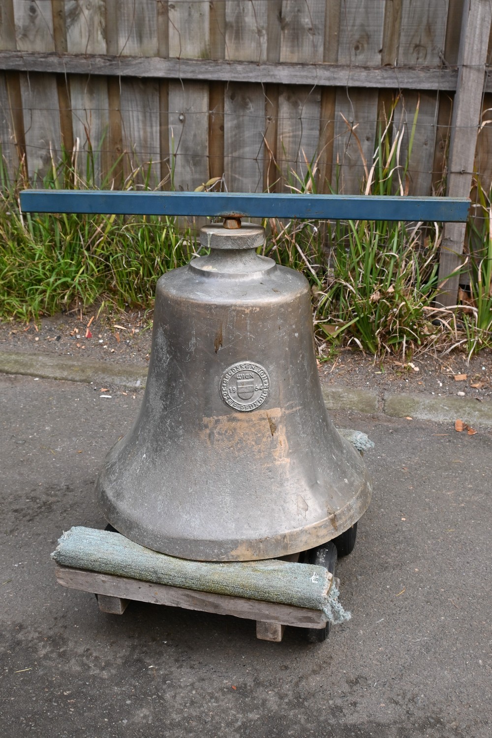 A VINTAGE AUSTRALIAN BELL CIRCA 1960'S (63H X 60D CM) (THIS HEAVY ITEM MUST BE REMOVED BY CLIENTS OR CARRIERS AT THE CUSTOMERS EXPENSE. LEONARD JOEL STAFF CANNOT ASSIST CARRYING THIS ITEM)