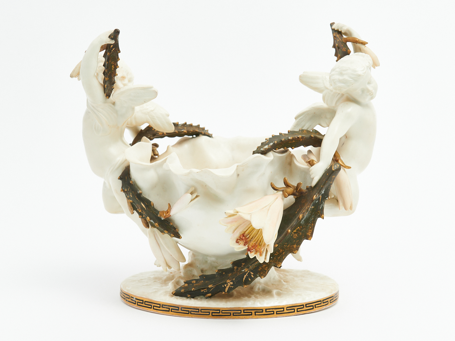 A MOORE BROTHERS COMPORT CIRCA 1880 H.24CM X W.24CM (SMALL CHIPS TO FOLIAGE), LEONARD JOEL LOCAL DELIVERY: SMALL