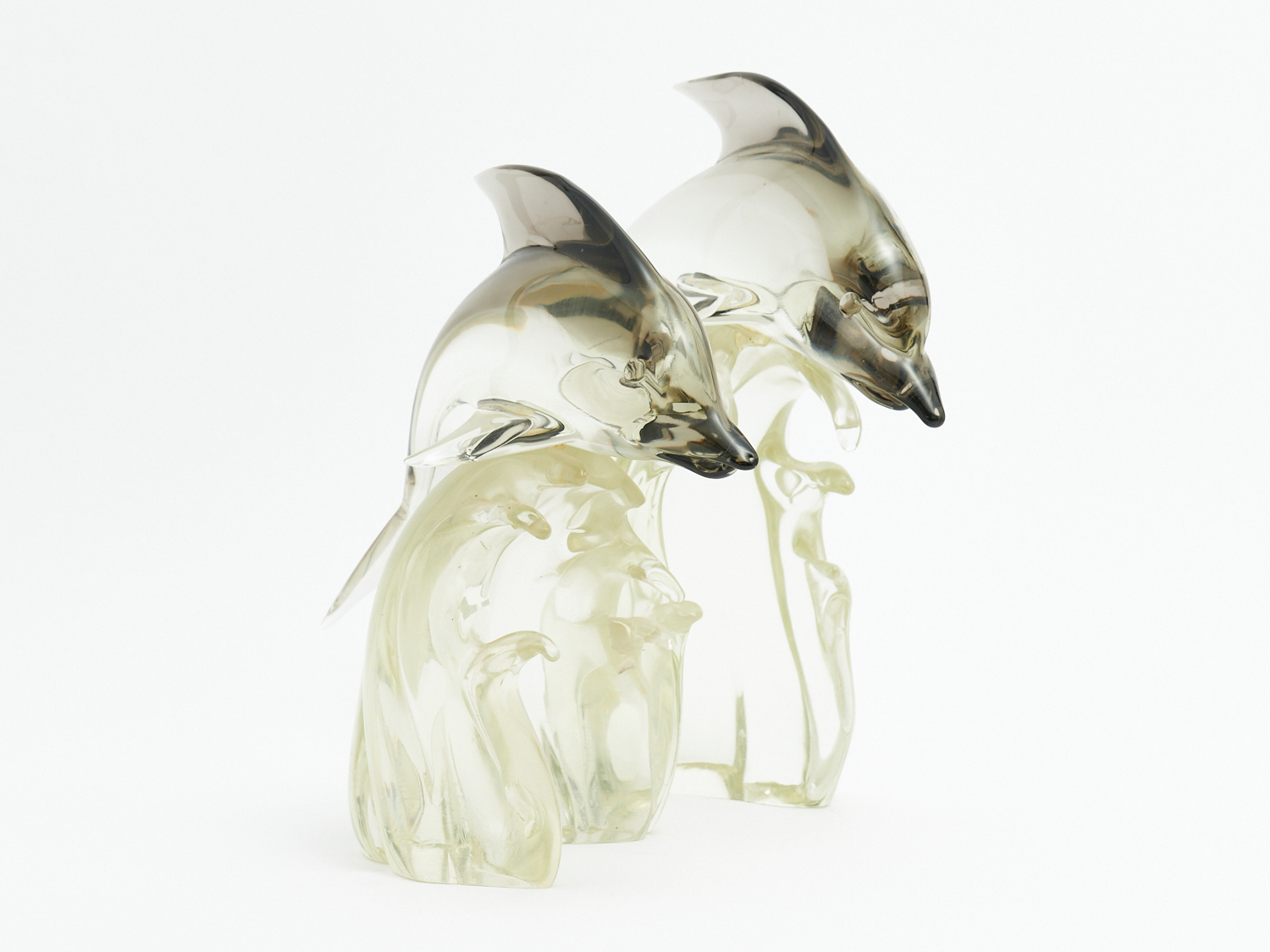 A PAIR OF GLASS DOLPHIN SCULPTURES H.35CM, LEONARD JOEL LOCAL DELIVERY: MEDIUM