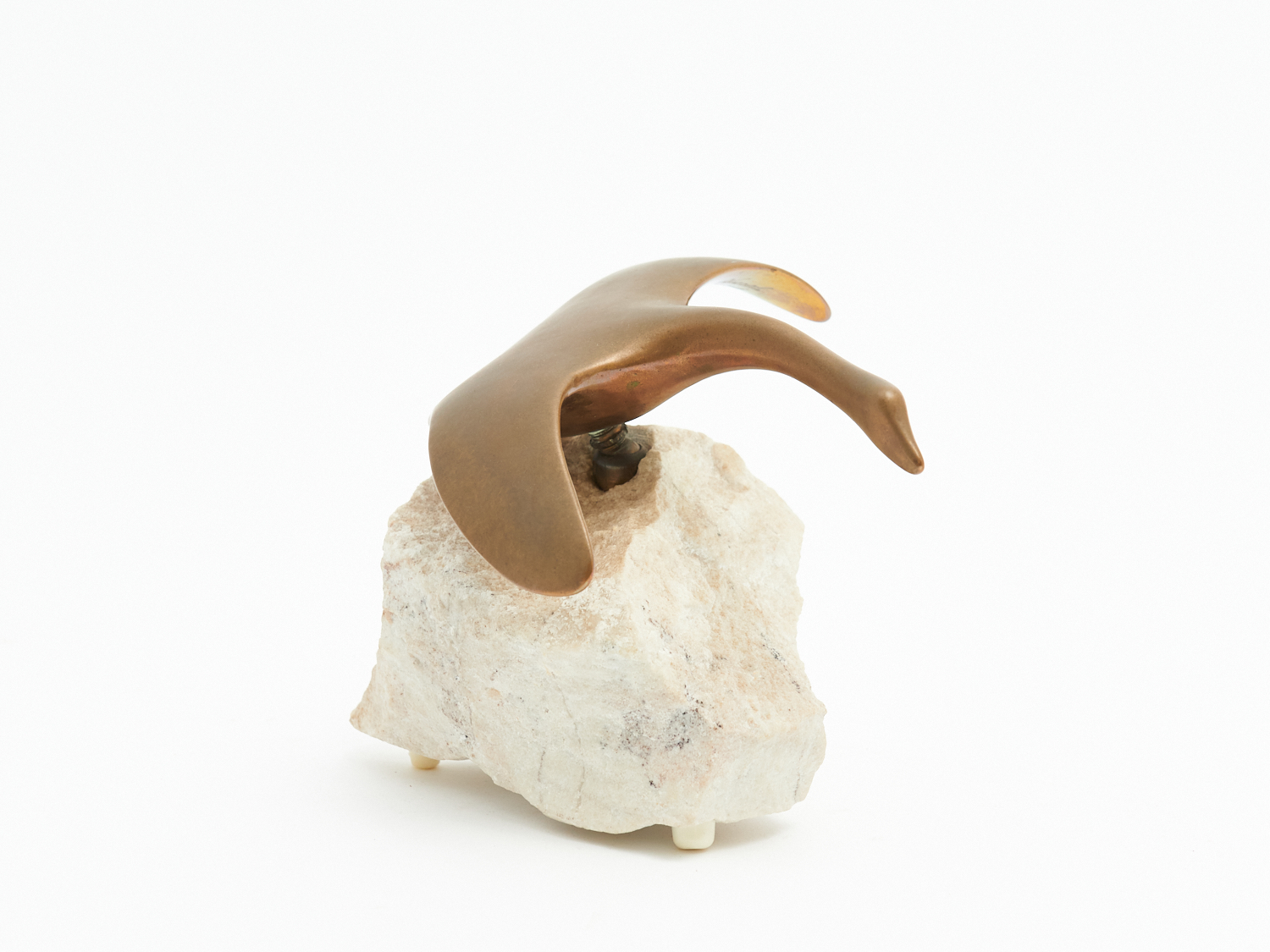 A BRASS SCULPTURE OF A BIRD ON A ROCK, SIGNED H.14.5CM, LEONARD JOEL LOCAL DELIVERY: SMALL
