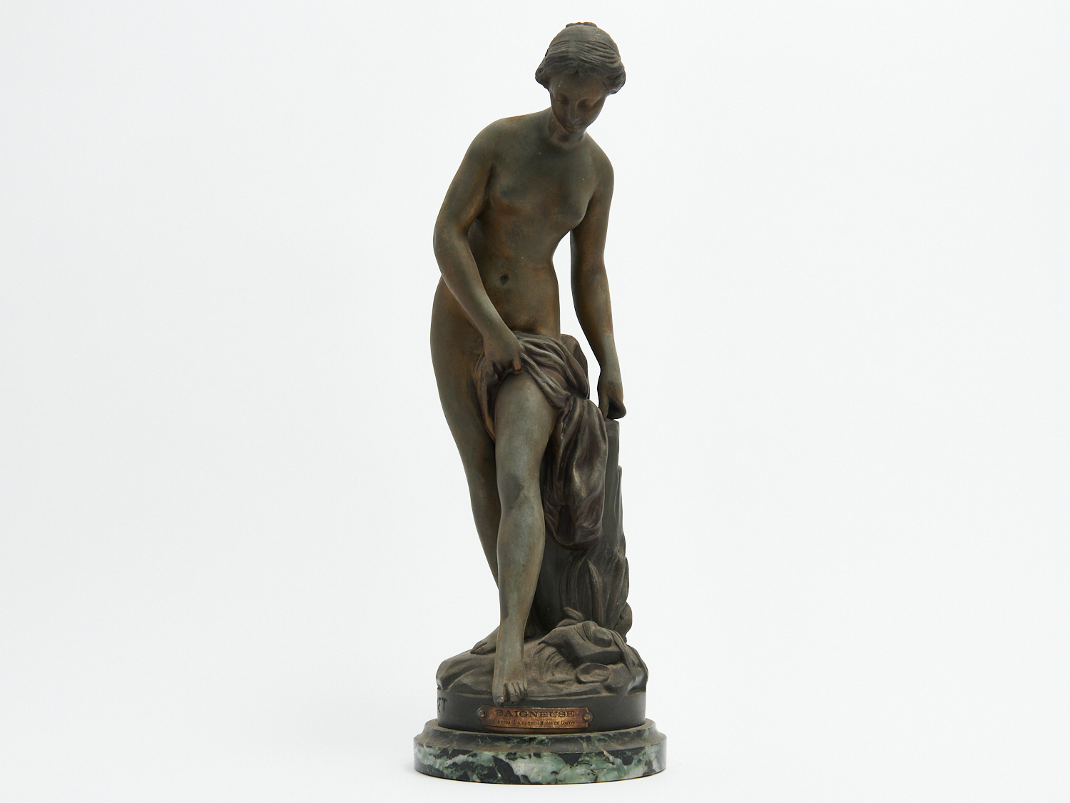 A SPELTER FIGURE OF "BAISHEUSE" AFTER FALCONET H.45CM, LEONARD JOEL LOCAL DELIVERY: MEDIUM
