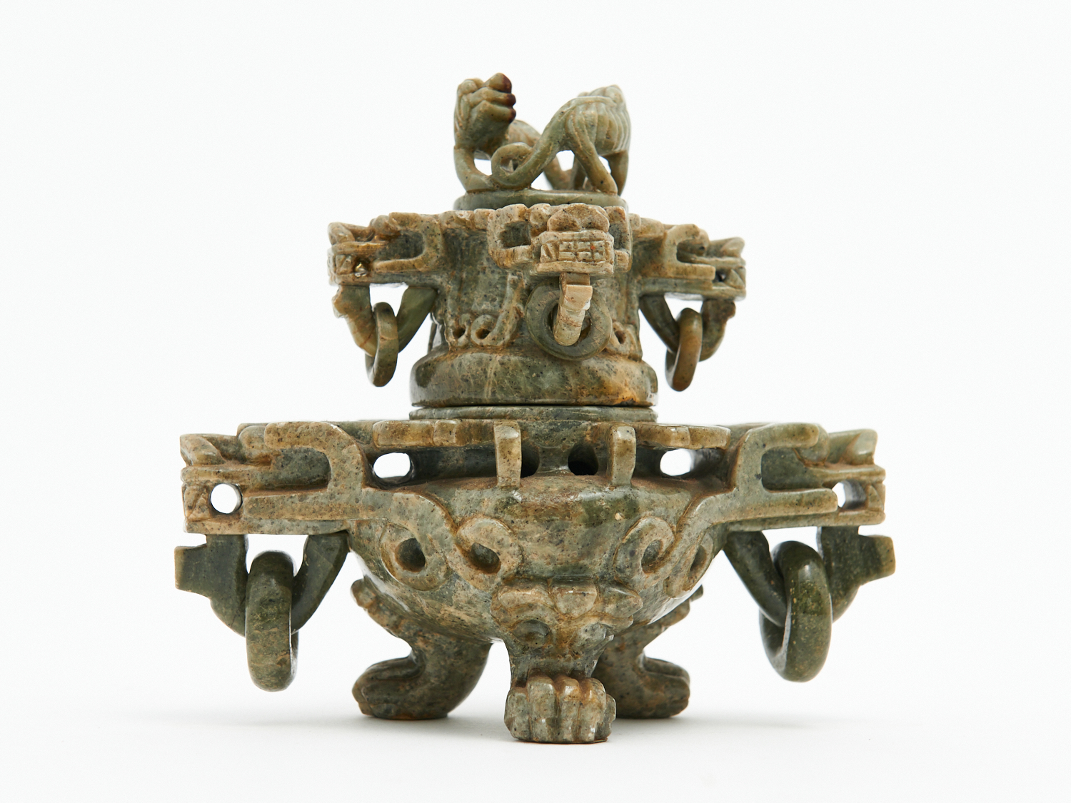 A CHINESE JADE INCENSE BURNER H.14.5CM X W.15.5CM, LEONARD JOEL HOME DELIVERY SIZE: SMALL
