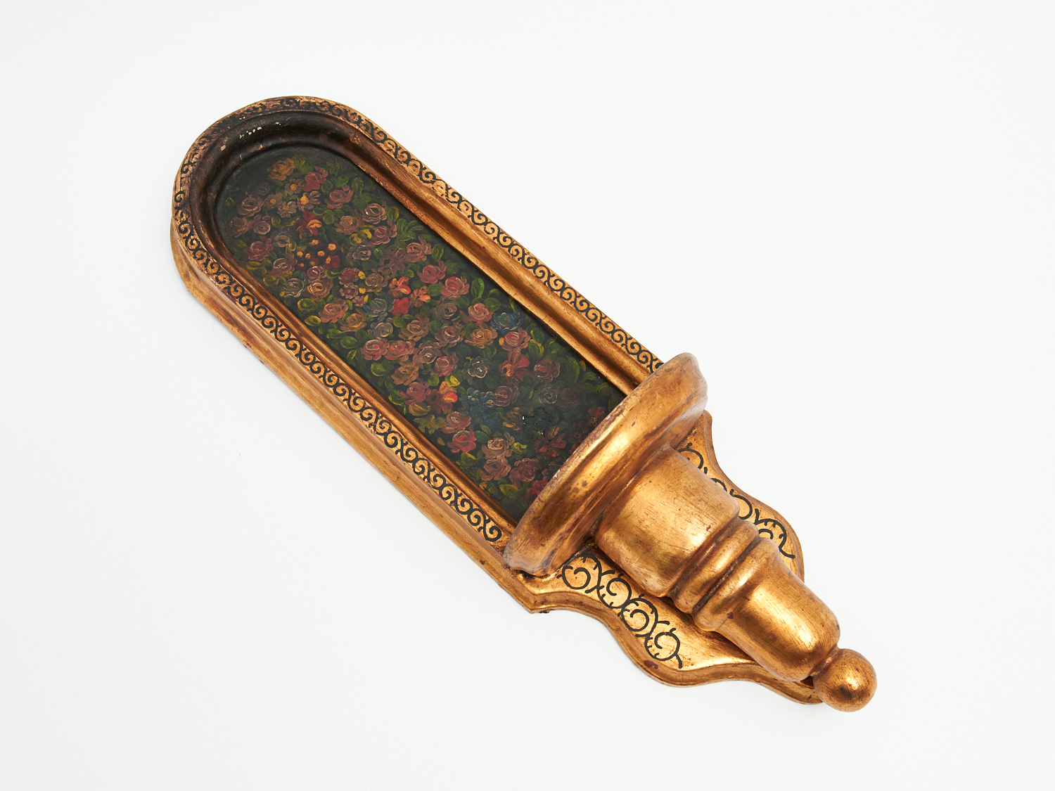A WOODEN GILDED WALL SCONCE WITH HAND PAINTED DECORATIONS H.47CM X W.15CM, LEONARD JOEL LOCAL DELIVERY: SMALL
