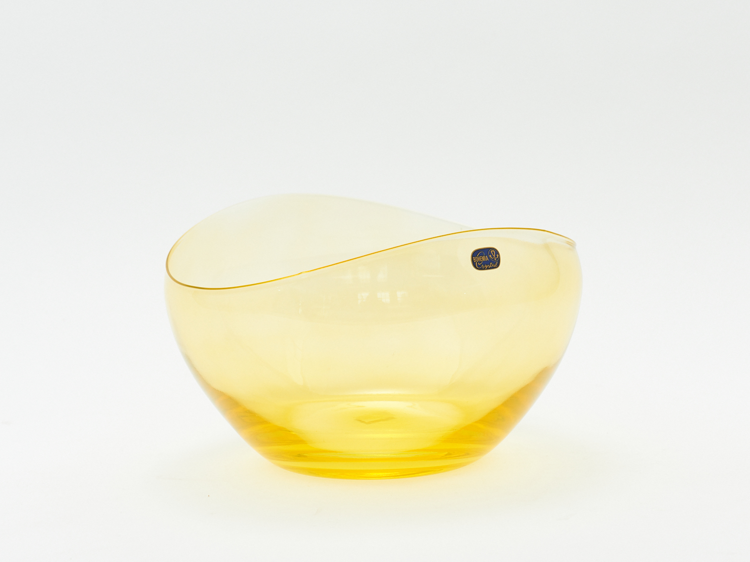A 1950'S CZECH IRIDESCENT YELLOW CRYSTAL WITH ORIGINAL LABEL DIA.23 CM, LEONARD JOEL HOME DELIVERY SIZE: SMALL