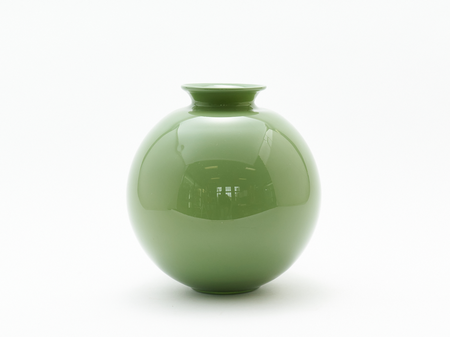 A LARGE HAND BLOWN GREEN GLOBULAR VASE H.27CM, LEONARD JOEL HOME DELIVERY SIZE: MEDIUM