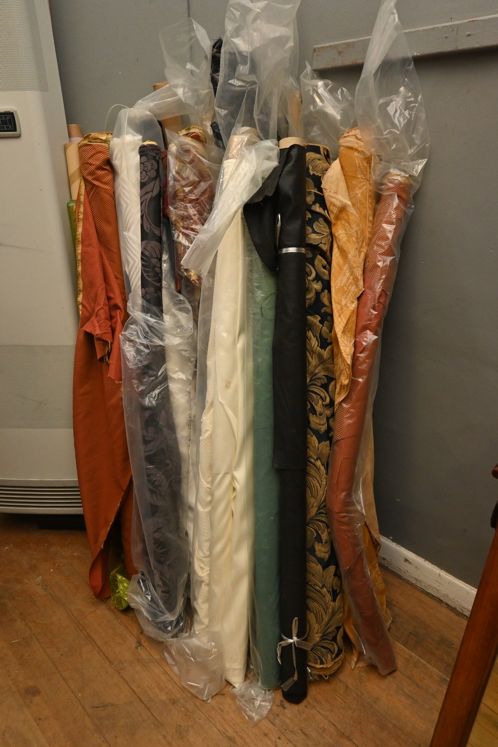 A QUANTITY OF BOLTS OF UPHOLSTERER'S FABRIC (A/F) (160H CM) (LEONARD JOEL DELIVERY SIZE: (LEONARD JOEL DELIVERY SIZE: X-LARGE)